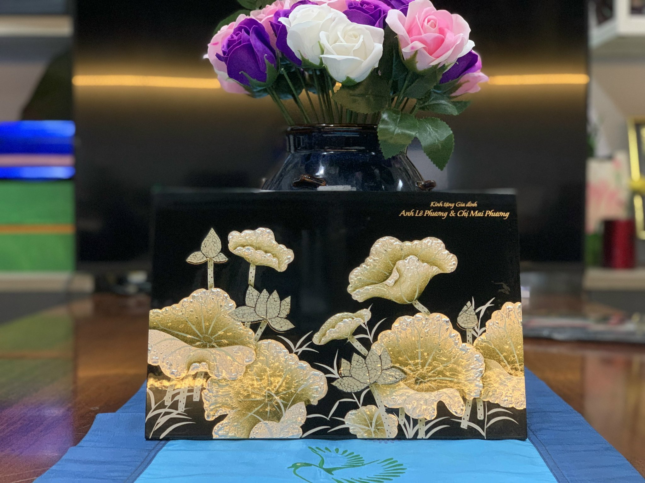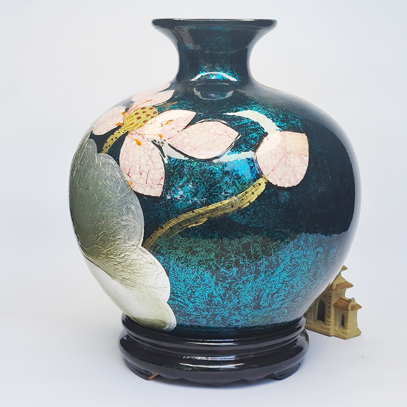 Lọ hoa sen sơn mài cẩn trứng đẹp