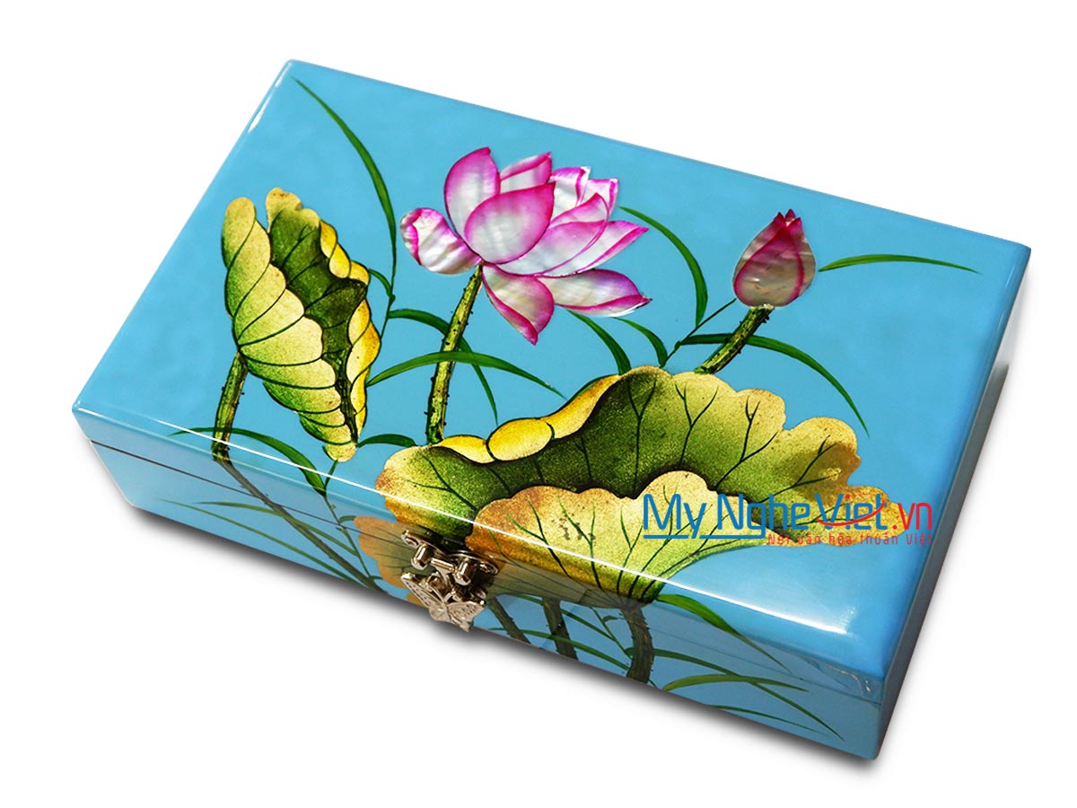 Hộp trang sức nền xanh cẩn ốc hoa sen
