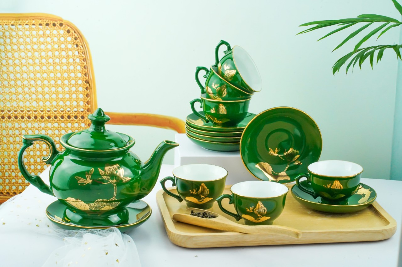Bình Trà Sen Xanh Ngọc Dáng Hồng Kông