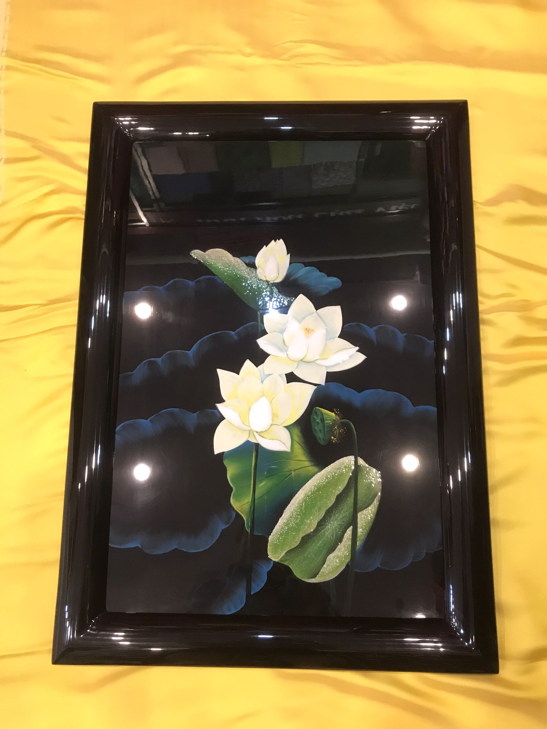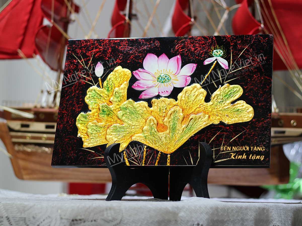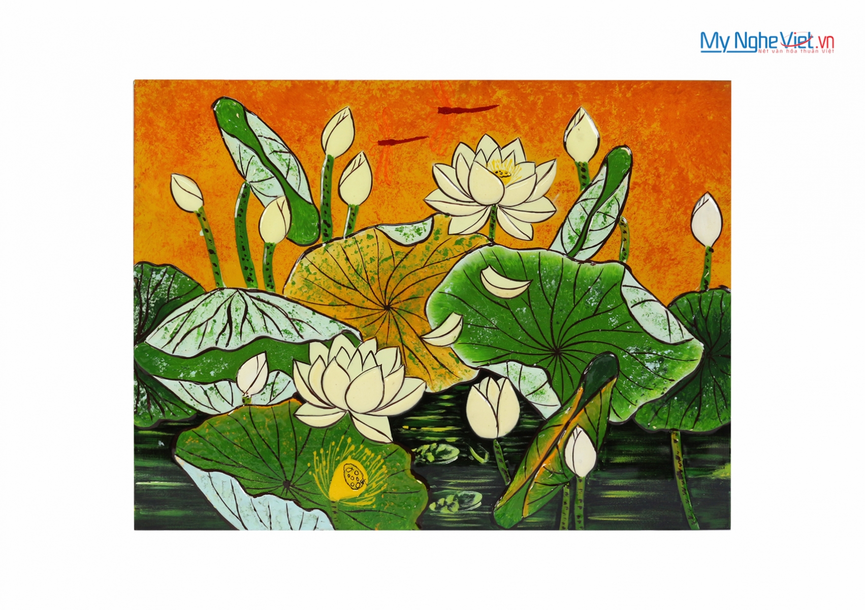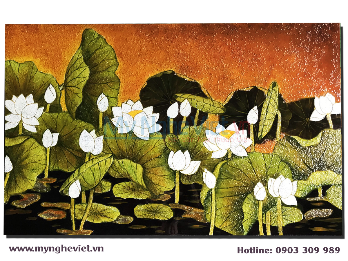 Quà tặng tranh sơn mài biểu tượng hoa sen trắng