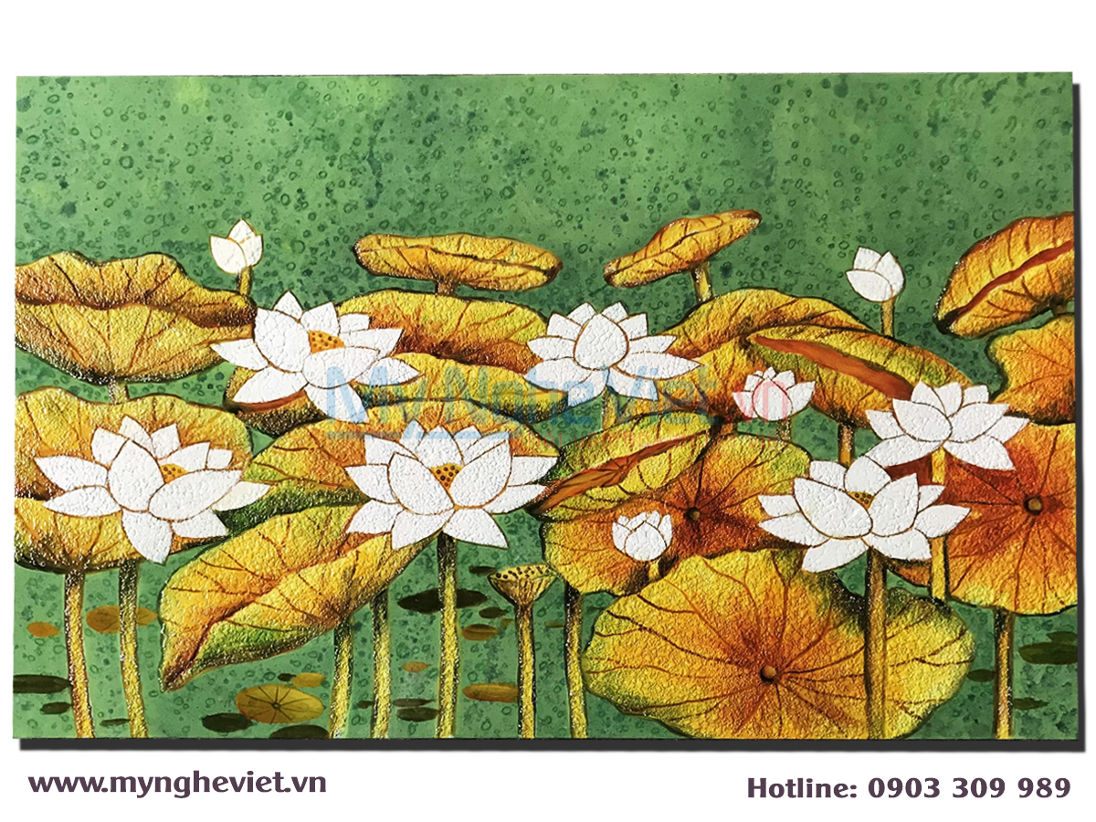 Những bức tranh in hình sen trắng lại cho người ta cảm nhận được nét bình dị và thanh cao. Đây là loài sen vừa chất chứa nét tôn nghiêm vừa mang lại sự thanh thoát trong tâm hồn.