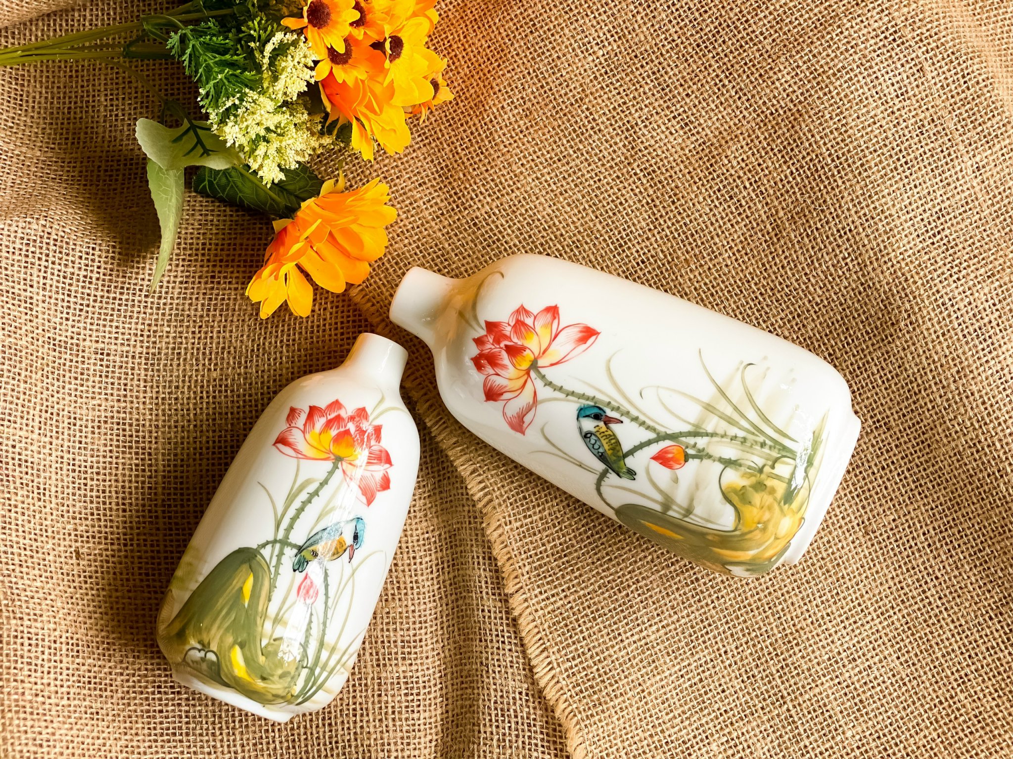 Những lọ hoa vẽ sen thường dùng để trang trí không cũng rất đẹp rồi nhưng nếu có thêm vài bông hoa xinh đẹp từ bàn tay của các chị em sẽ giúp không gian gia đình trở nên có hồn và sinh động hơn.