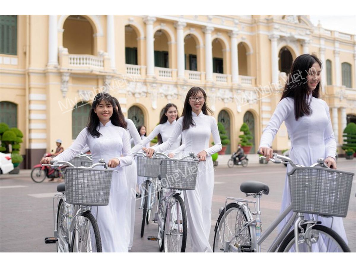 Chắc hẳn áo dài tinh khôi một thời khiến ta nhìn lại vẫn còn nguyên những cảm xúc hồn nhiên, vui tươi một thời. Khung cảnh nữ sinh mặc áo dài dắc xe nơi sân trường cũng đã khiến bao chàng chai trẻ lúc đấy bồi hồi đúng không?
