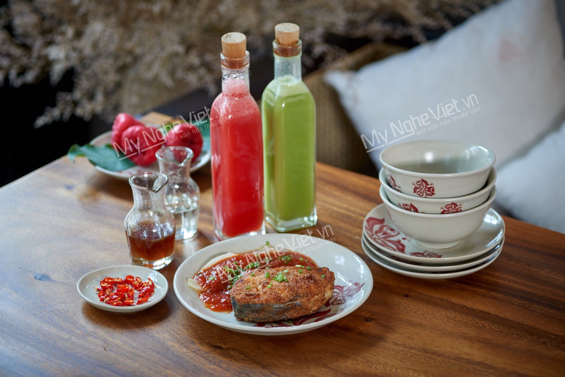 Bộ bàn ăn nằm trong dự án của một người con đất Việt. Một người kiến trúc sư mang trong mình những ký ức thơ ấu mộc mạc tại Việt Nam. Tuổi trẻ cô bồi đắp bởi sự tinh xảo và hơi hướng lãng mạng từ Pháp. Sự pha trộn độc đáo này đã mang đến một nét tính cách vừa mộc mạc vừa cực kỳ tinh tế. Bộ chén dĩa nhà hàng “Maison Mận-Đỏ” thể hiện rõ nét sự tỉ mẩn trong từng chi tiết của cô chủ.