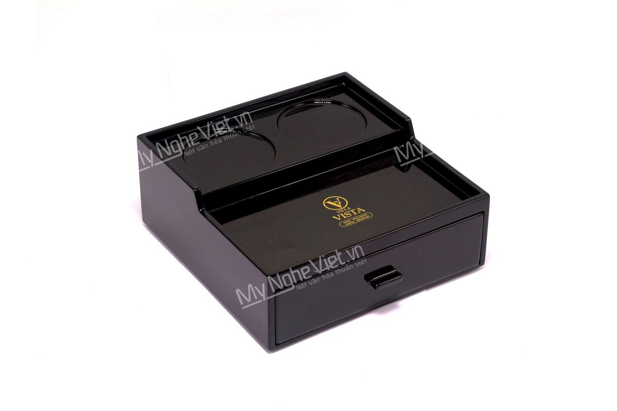 Bộ sản phẩm cũng là quá trình cân nhắc, chọn lựa, design của Mỹ Nghệ Việt cùng với Villa Vista để tạo nên được sản phẩm mang hơi hướng hiện đại, sang trọng và thật nổi bật logo của công ty. Logo được in nhũ vàng cực tinh xảo, đem lại cảm giác rất “hoàng gia”.