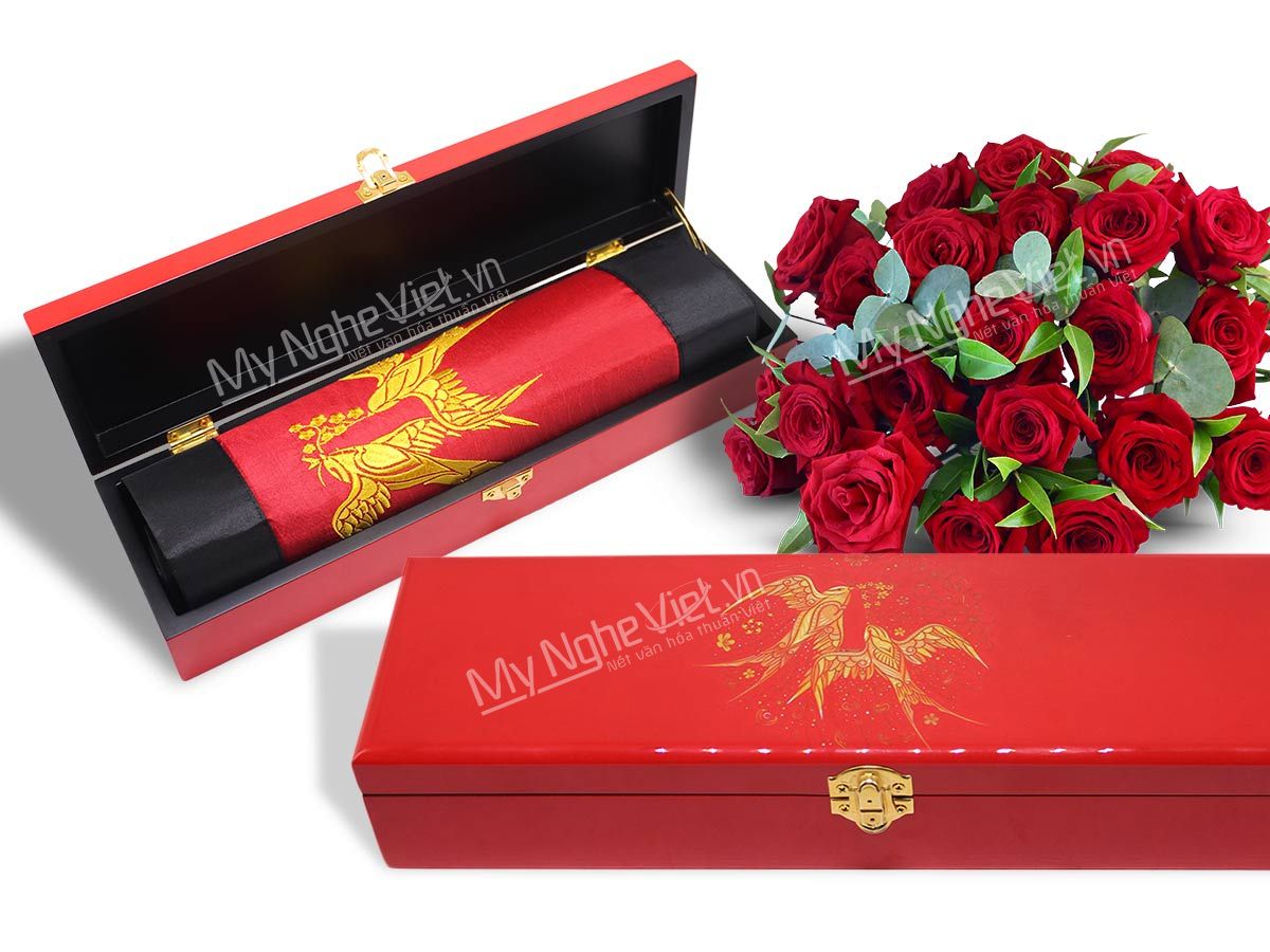 Để món quà tặng trở nên cao cấp và bày tỏ sự trân trọng đến khách hàng VIP, chúng tôi kết hợp với hộp đựng bằng sơn mài vô cùng sang trọng. Hộp sơn mài được thiết kế bởi đội ngũ Mỹ Nghệ Việt và gia công chế tác tại làng nghề Tương Bình Hiệp.