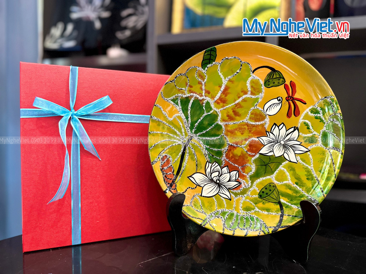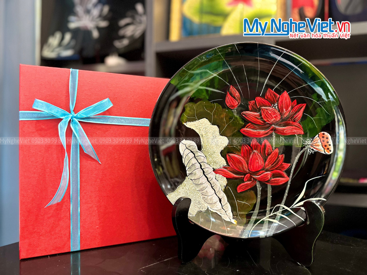 Tranh đĩa sơn mài là một loại nghệ thuật truyền thống độc đáo của Việt Nam. Quý khách có thể yêu cầu khắc chữ khi mua tranh đĩa sơn mài tại Mỹ Nghệ Việt. Ngoài ra, khi mua với số lượng lớn quý khách có thể yêu cầu vẽ ảnh theo yêu cầu.