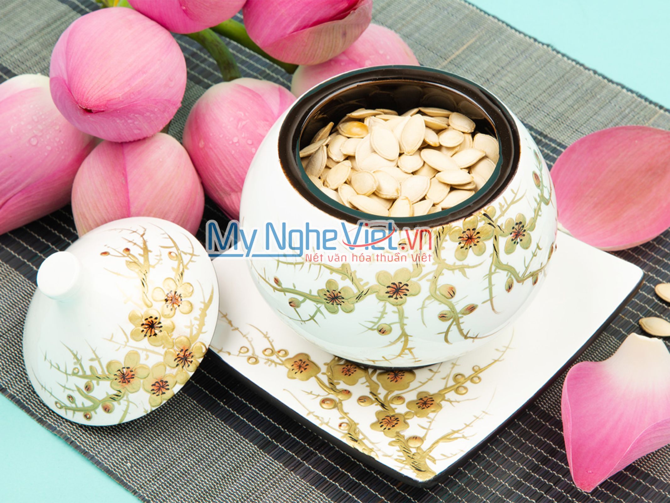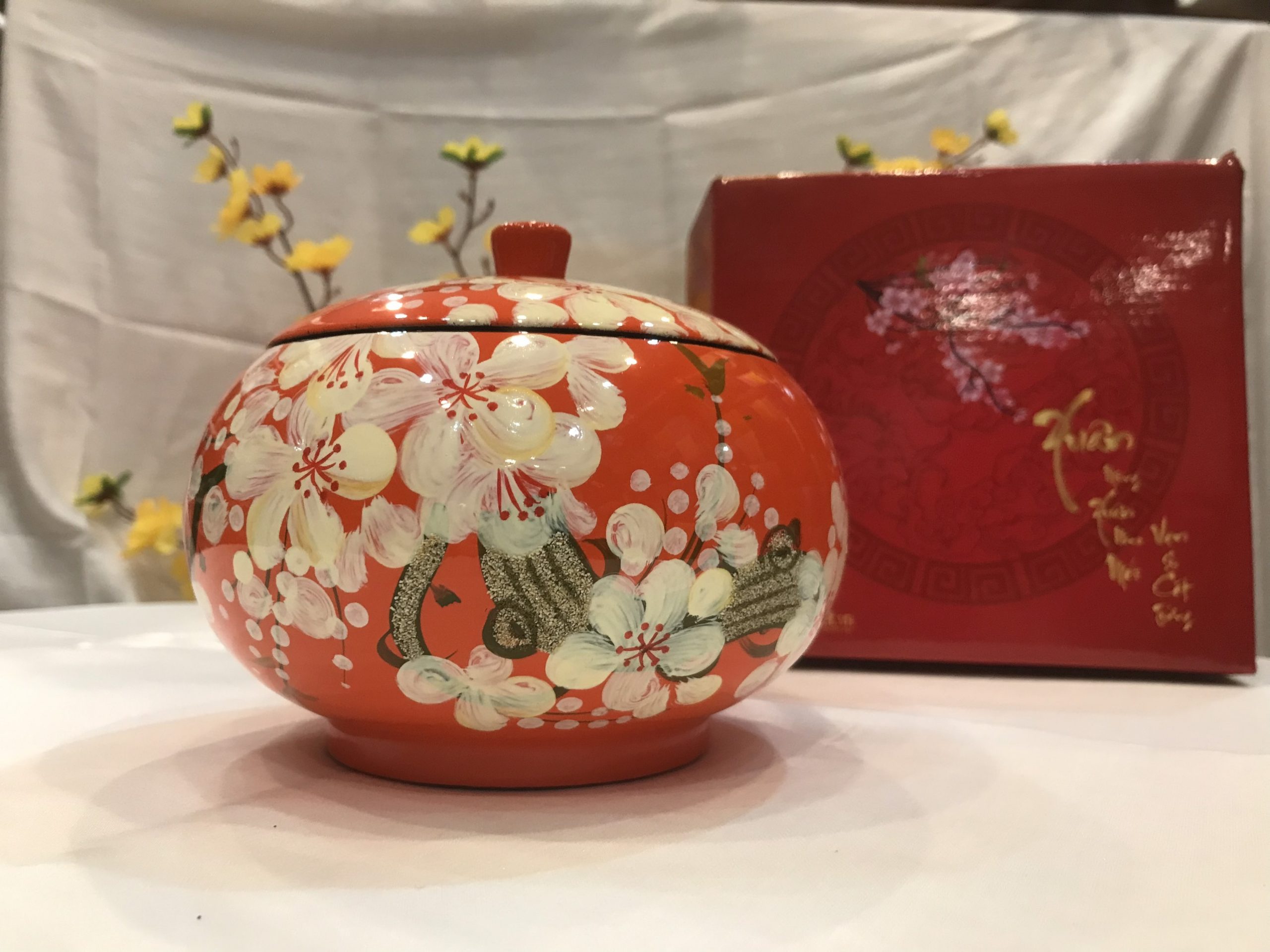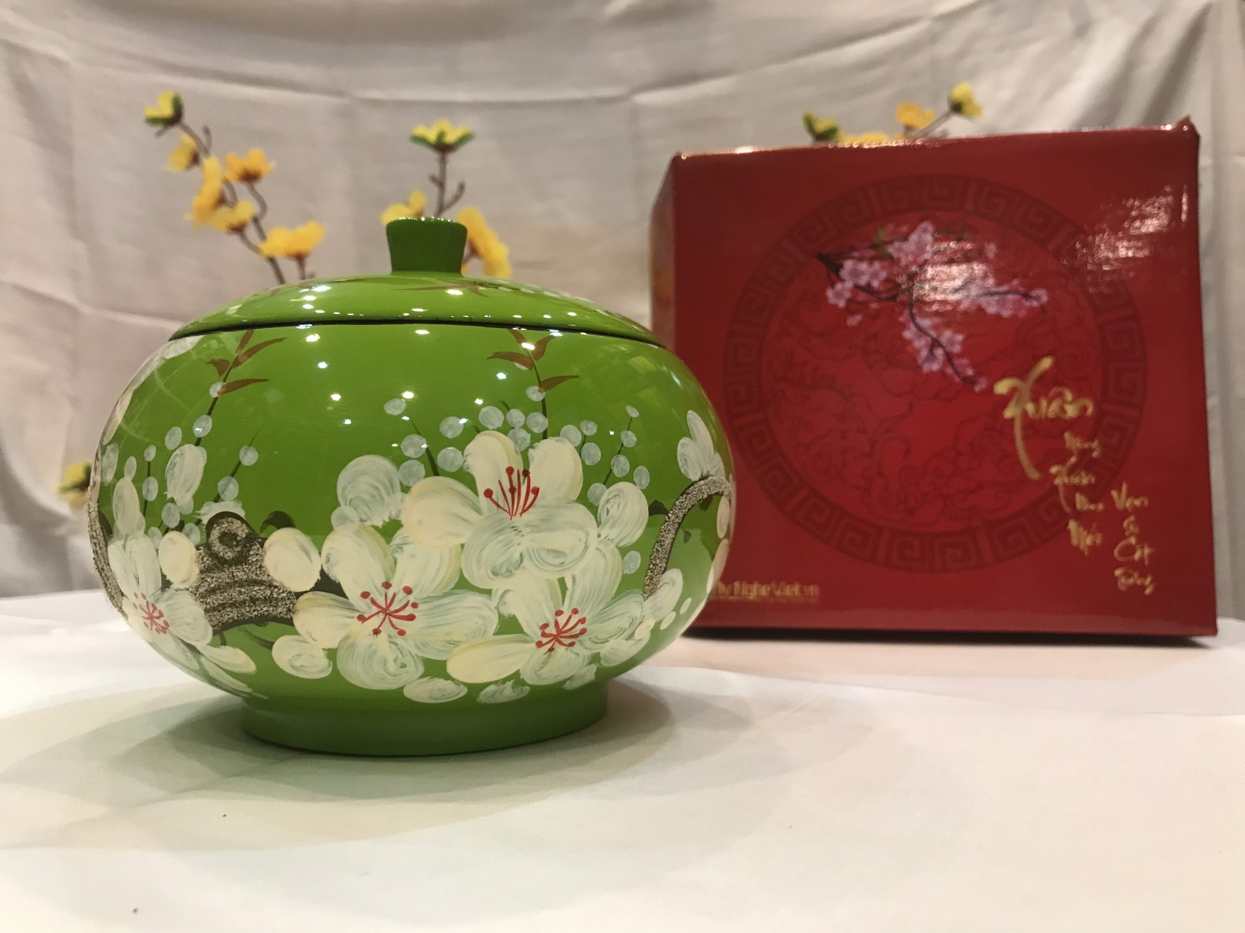 Hũ mận sơn mài không chỉ mang tính nghệ thuật sâu sắc mà còn được dùng làm quà tặng ý nghĩa, thiết thực cho nhân viên, khách hàng mỗi dịp tết đến xuân về. Sản phẩm ngoài công dụng đựng bánh kẹo tiếp khách dịp tết, còn được dùng để trang trí cho không gian phòng khách thêm ấm cúng và sang trọng.