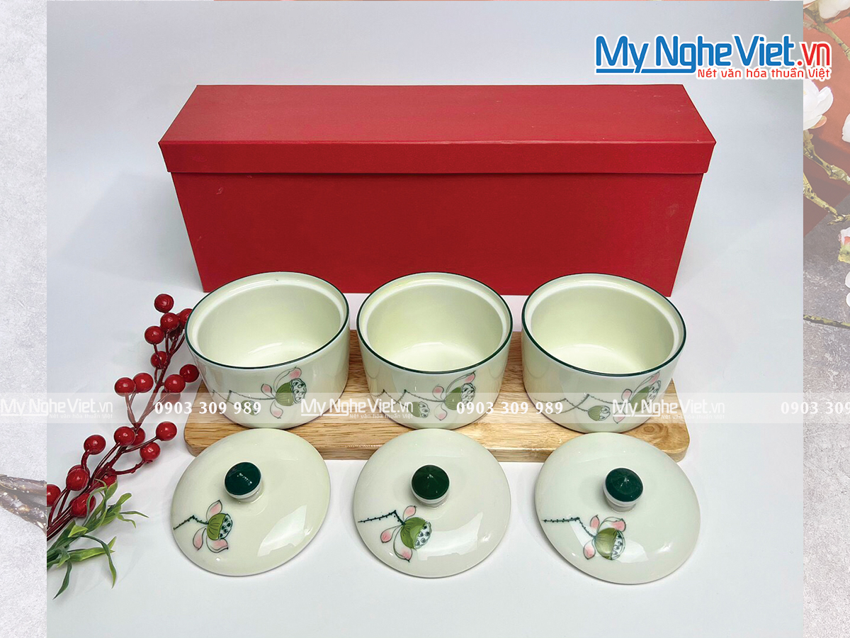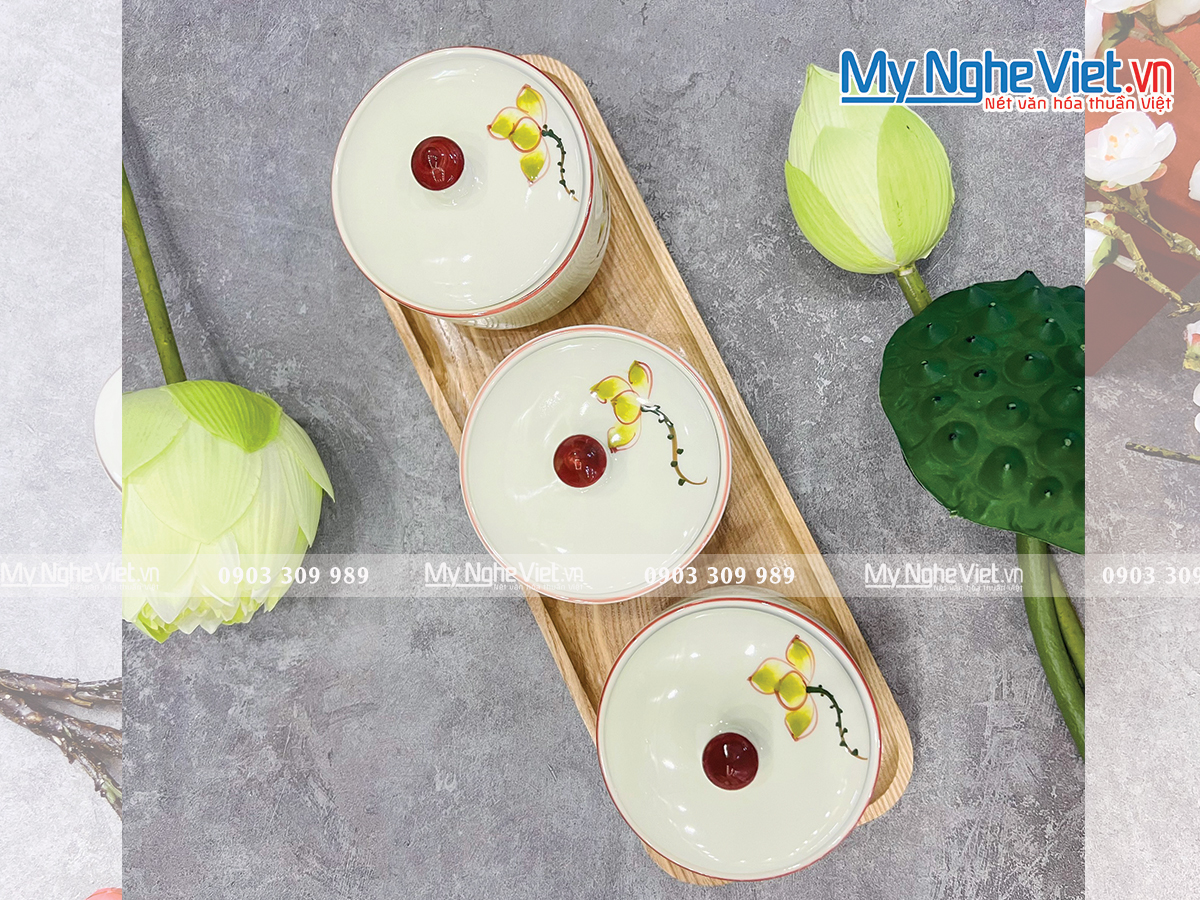 Set 3 hũ mứt có nhiều hình dáng, kích thước và màu sắc khác nhau. Hoa văn trang trí đều được vẽ tay hoàn toàn 100% bởi những nghệ nhân lành nghề.