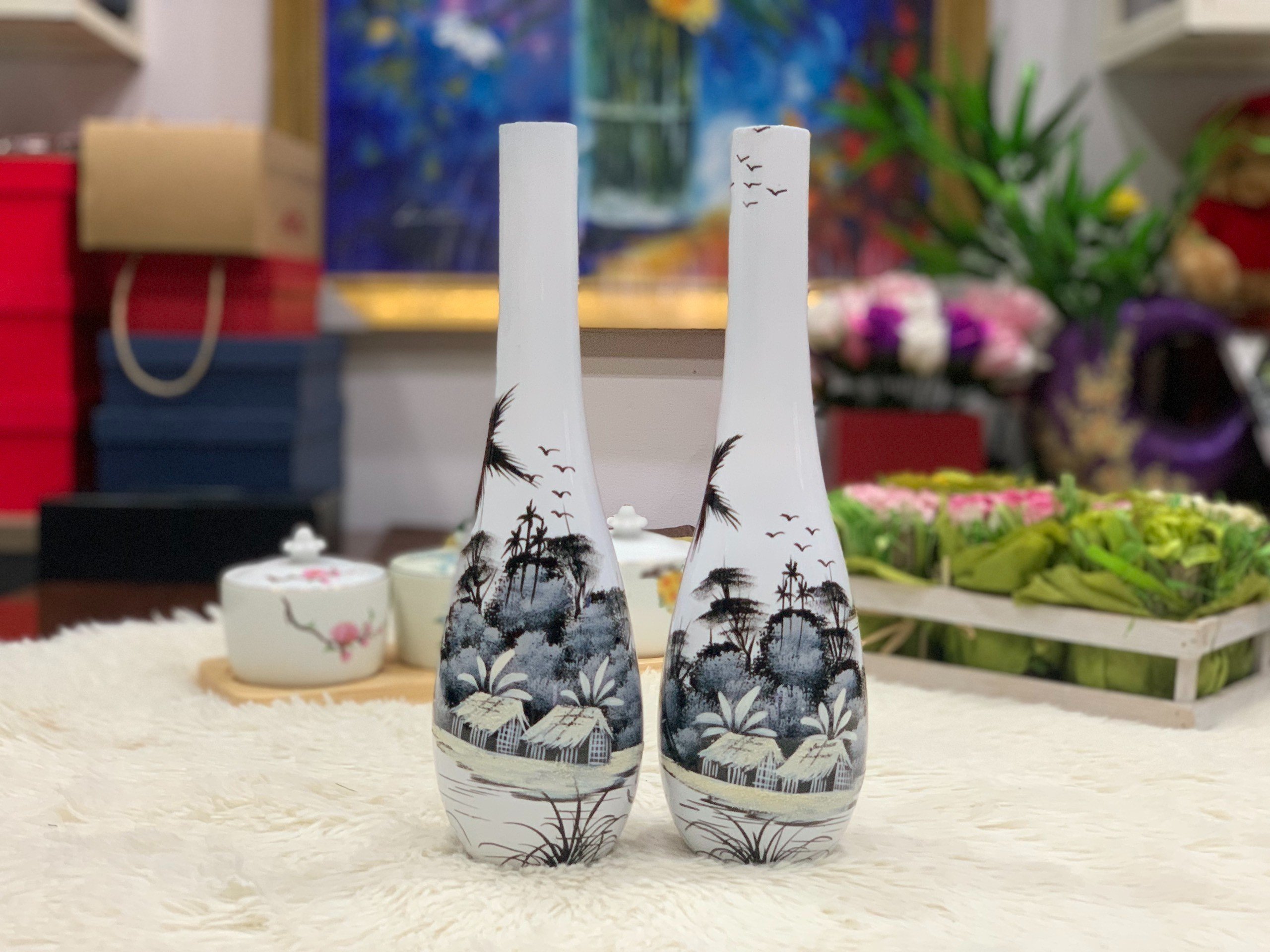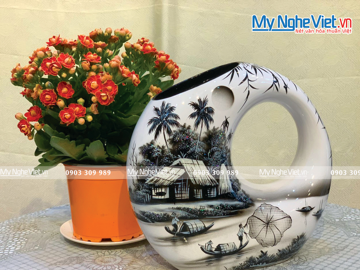 Sản phẩm được vẽ tay hoàn toàn bởi các nghệ nhân làng nghề truyền thống, với sự sáng tạo và kinh nghiệm dày dặn người nghệ nhân đã cho ra những sản phẩm vẽ tay độc đáo, đậm nét bản sắc văn hóa Việt. Lọ hoa có thể được đặt trên bàn làm việc, kệ sách, trong phòng khách để tăng thêm vẻ đẹp sang trọng cho ngôi nhà.