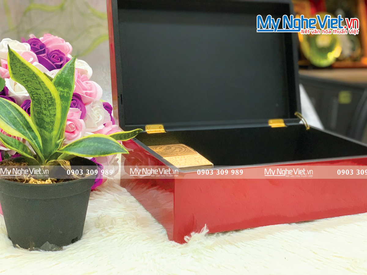 Hộp đựng bánh trung thu bằng sơn mài được các đối tác biết đến như là yếu tố tôn vinh sản phẩm, thương hiệu của nhà làm bánh trung thu, hoặc là món quà tặng sang trọng, đẳng cấp cho các doanh nghiệp gửi đến đối tác của mình. Hộp đựng bánh Trung Thu sơn mài nói riêng và sản phẩm sơn mài nói chung tại Mỹ Nghệ Việt luôn được kiểm soát chất lượng cực kỳ chặt chẽ. Quá trình sản xuất qua nhiều giai đoạn, hộp sơn mài được sơn và mài kỹ lưỡng 5-7 lớp sơn mài cao cấp. Quá trình kiểm tra chất lượng qua 2,3 trạm. Do đó, sản phẩm của Mỹ Nghệ Việt dễ dàng đáp ứng yêu cầu khắt khe của khách hàng.