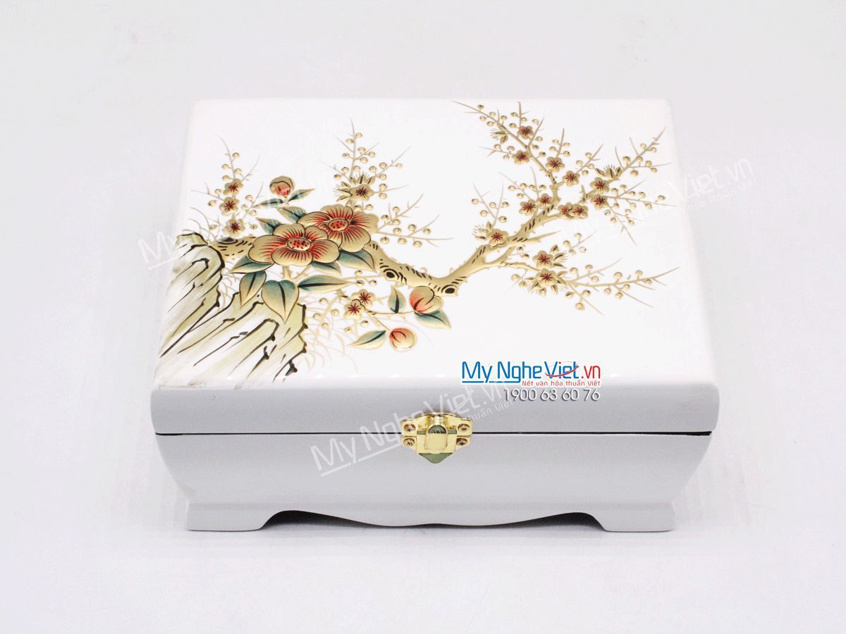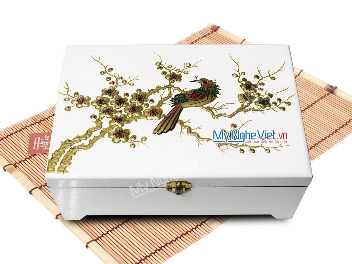 Hộp nữ trang, hộp trang sức bằng sơn mài là vật dụng cao cấp của chị em phụ nữ. Hộp dùng để cất giữ những trang sức, nữ trang mà họ trân trọng. Hộp nữ trang bằng sơn mài có lót nhung bên trong, chia ngăn dễ dàng cất nhẫn, đồng hồ, vòng đeo tay, vòng cổ,…