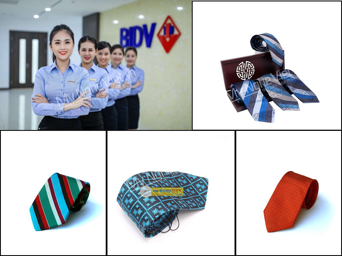 Với ngân hàng BIDV có màu chủ đạo là màu xanh và đỏ. Do đó, cà-vạt màu tương tự hoặc phối hợp cả hai màu.