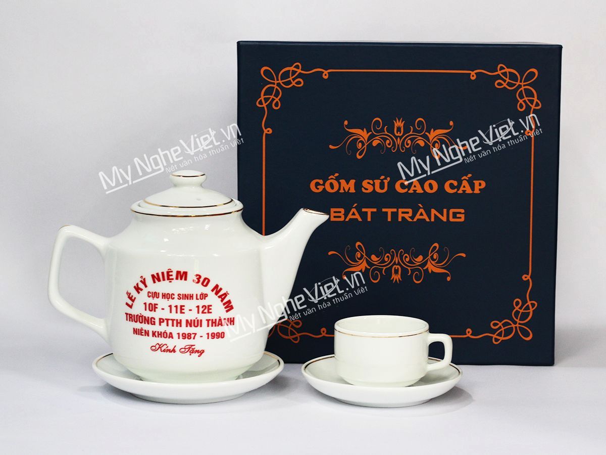 1. Bộ Bình Trà gốm Bát Tràng In Logo Quà tặng 30/4 – 1/5