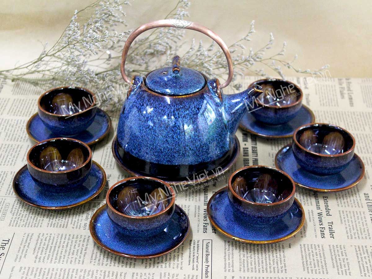 Bộ bình trà Bát Tràng mang nét sang trọng mà mộc mạc, tinh tế và quyền quý. Giá trị của bộ bình trà đến từ tâm hồn nghệ thuật và đôi tay khéo léo của người nghệ nhân làng nghề nổi tiếng. Đa số các mẫu bình trà đều được người thợ gốm làm bằng tay. Tường đường nét, phác họa đều là tâm huyết của sự đam mê và yêu nghề.