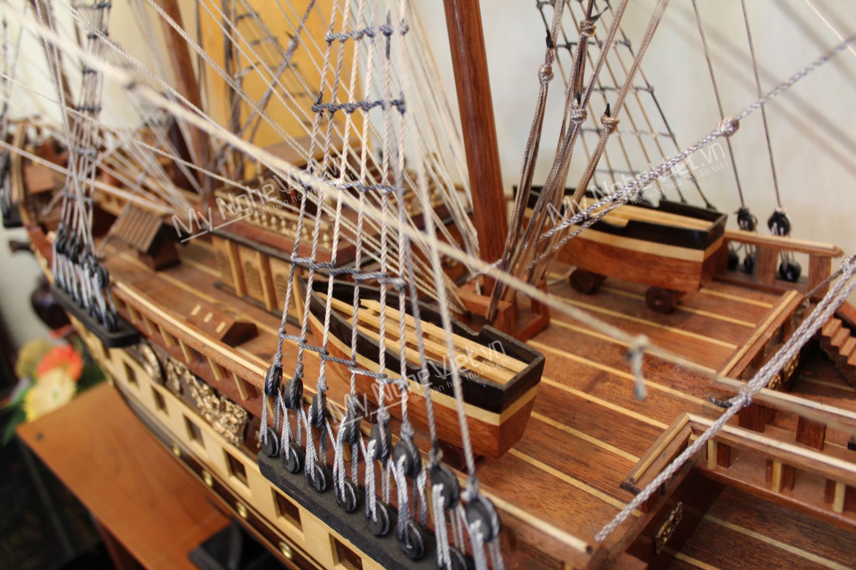 - Vật liệu chế tác. Dây dù, gỗ, vải bố, đồng, các vật liệu được sử dụng y như vật liệu thuyền thật và đều được xử lý kỹ lưỡng để có tuổi thọ cao nhất.