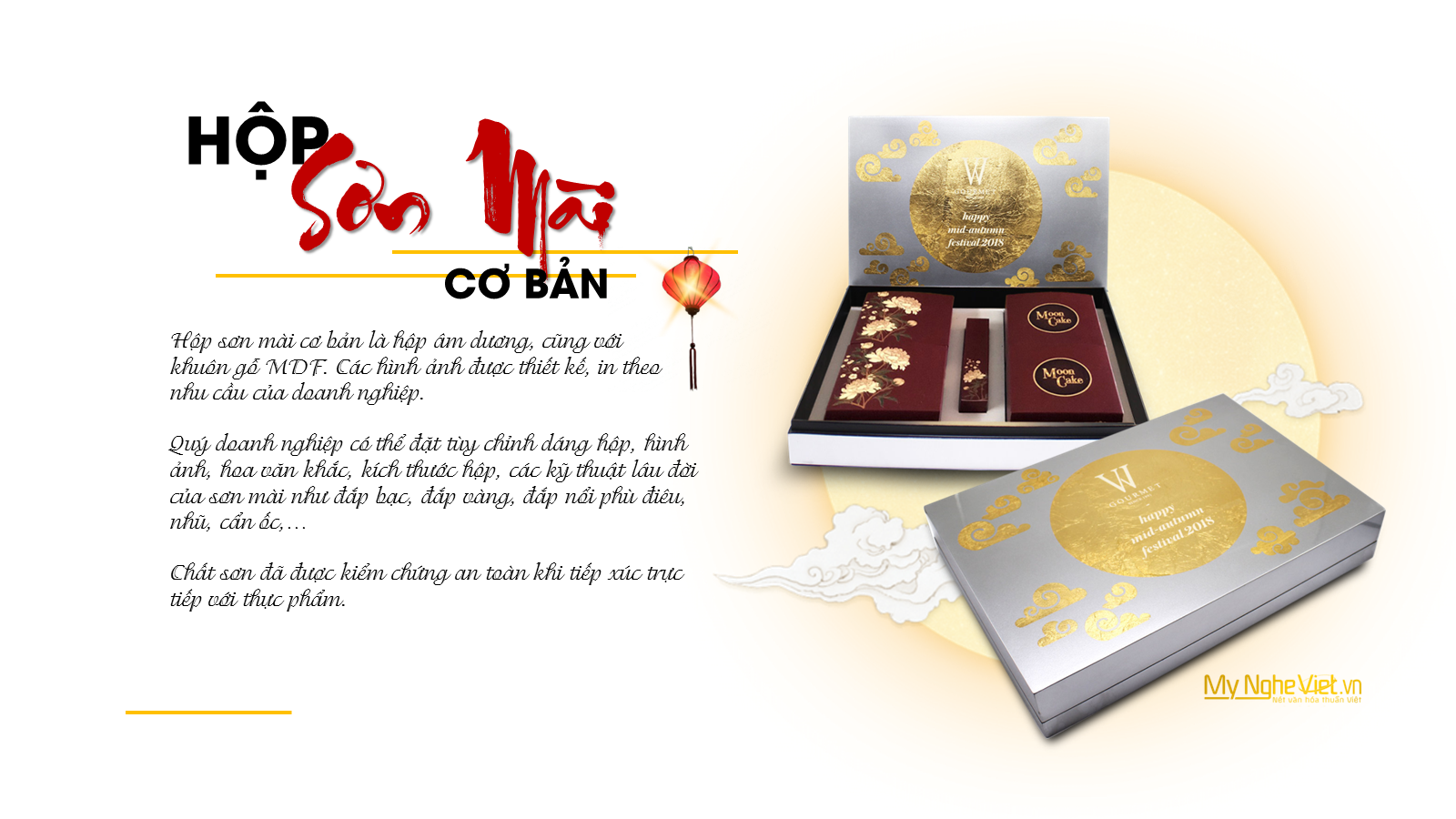 Không đơn thuần chỉ là thể hiện sự xa xỉ, cái đẹp và sang trọng còn thể hiện sự trân trọng cho người được tặng. Dù món quà bên trong thế nào thì với một cái hộp quà đẹp, người nhận quà sẽ tự nhiên cảm nhân được sự trân trọng, chăm chút và tinh tế của bạn. Bạn có thể tham khảo mẫu hộp trung thu sơn mài cao cấp rất sang trọng mà chúng tôi đã thực hiện để cảm nhận được món quà sang trọng cần những gì. Đặc biệt, hộp quà trung thu của Mỹ Nghệ Việt còn có thể được thiết kế, vẽ hình, khắc tên, chạm trổ tinh tế theo yêu cầu khách hàng để đảm bảo cho bạn một món quà có một không hai danh cho người thân, khách hàng và đối tác