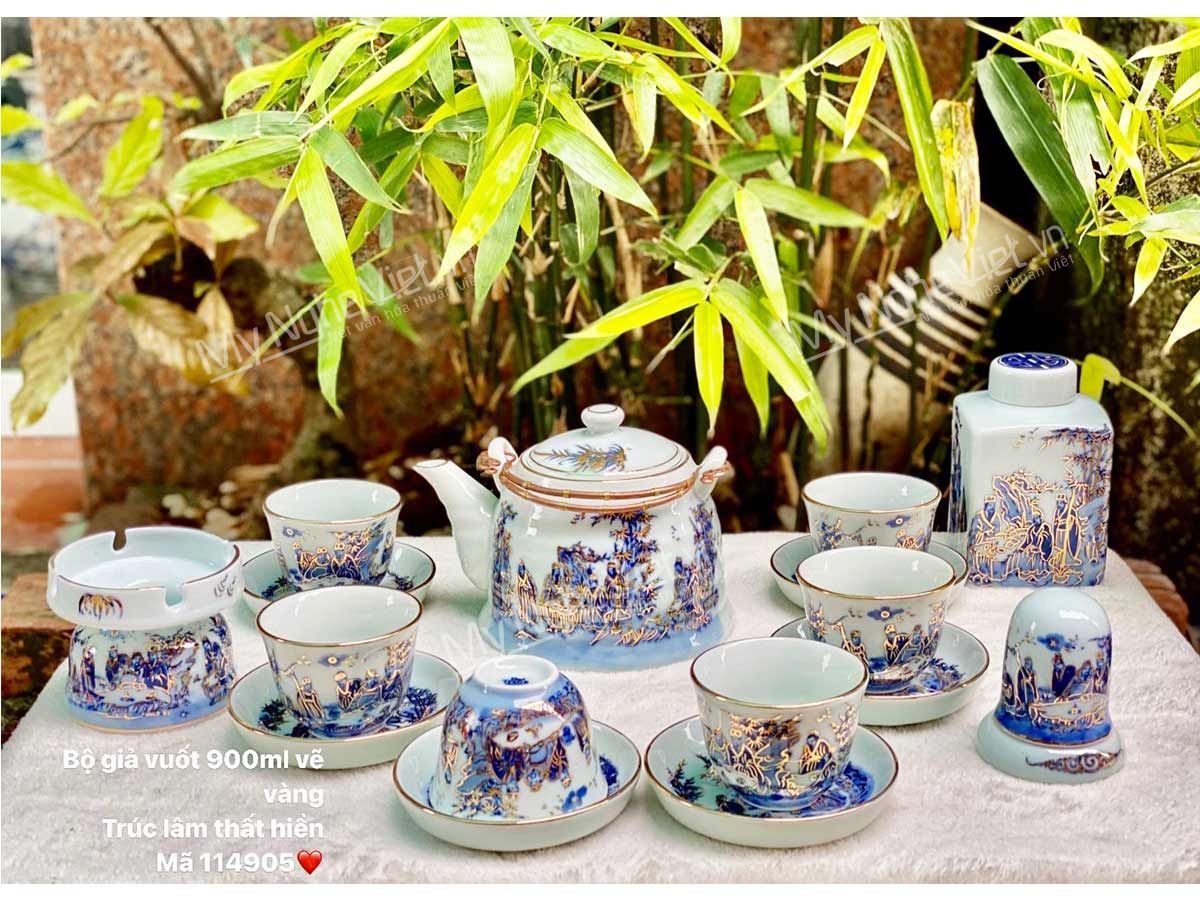 Bình Trà vẽ bằng Vàng gốm Bát Tràng
