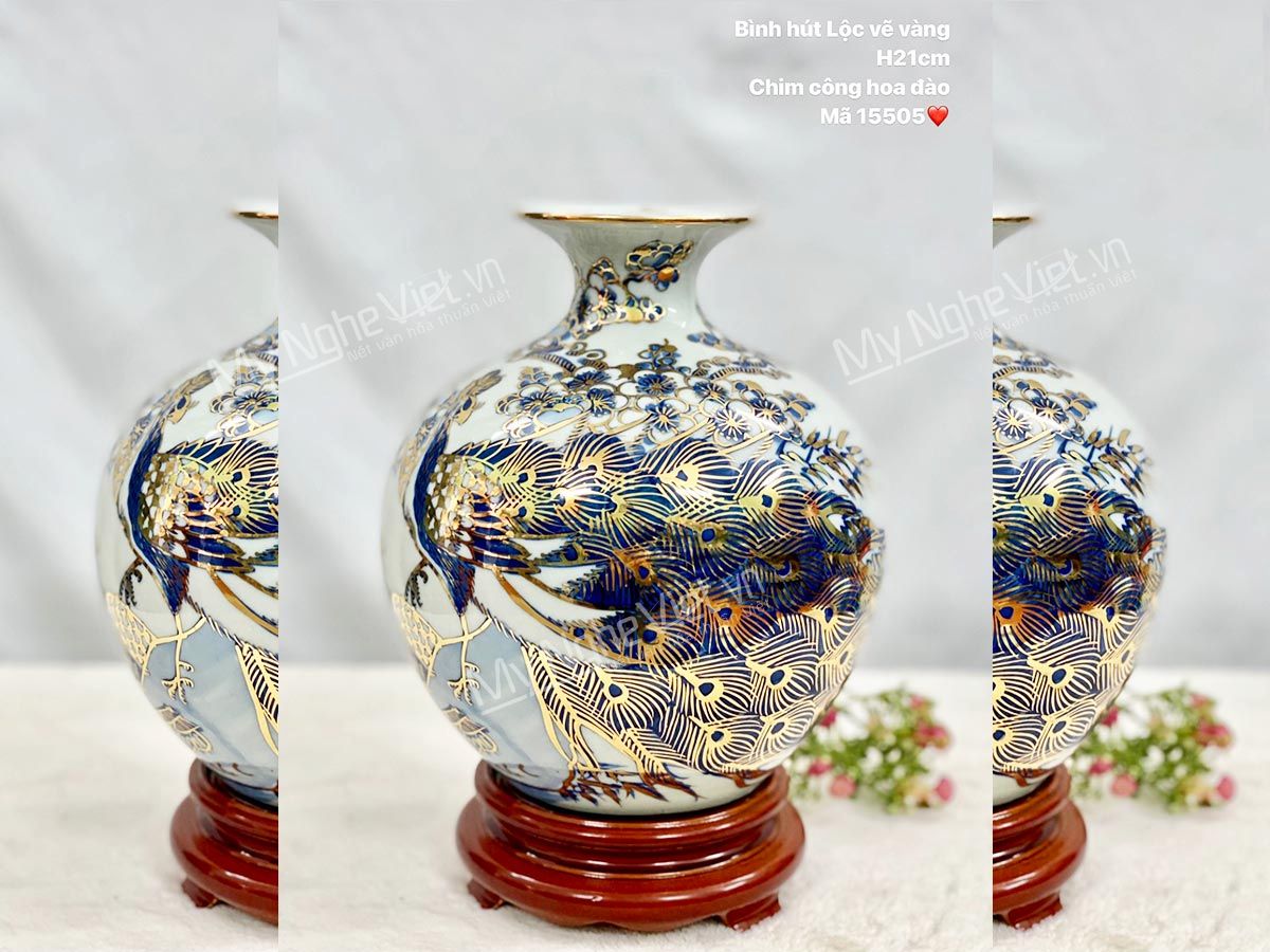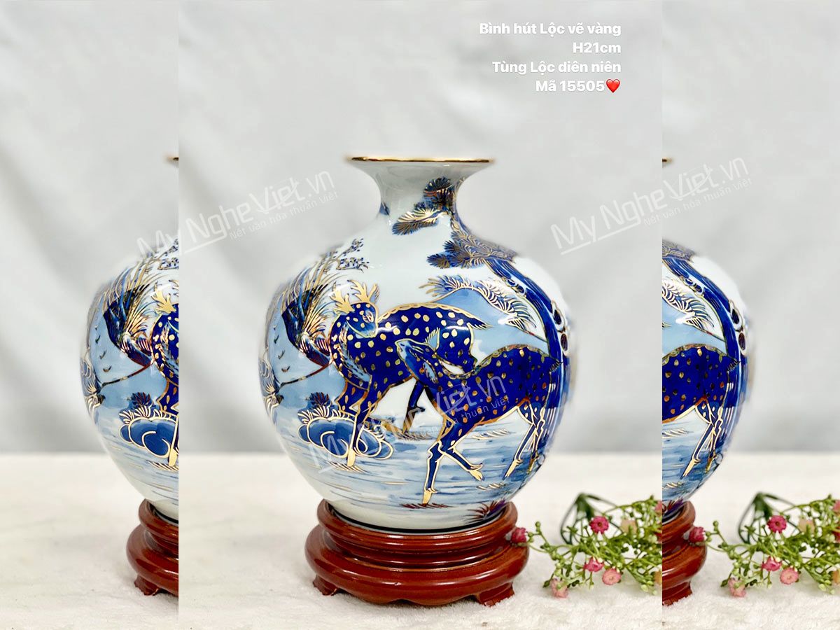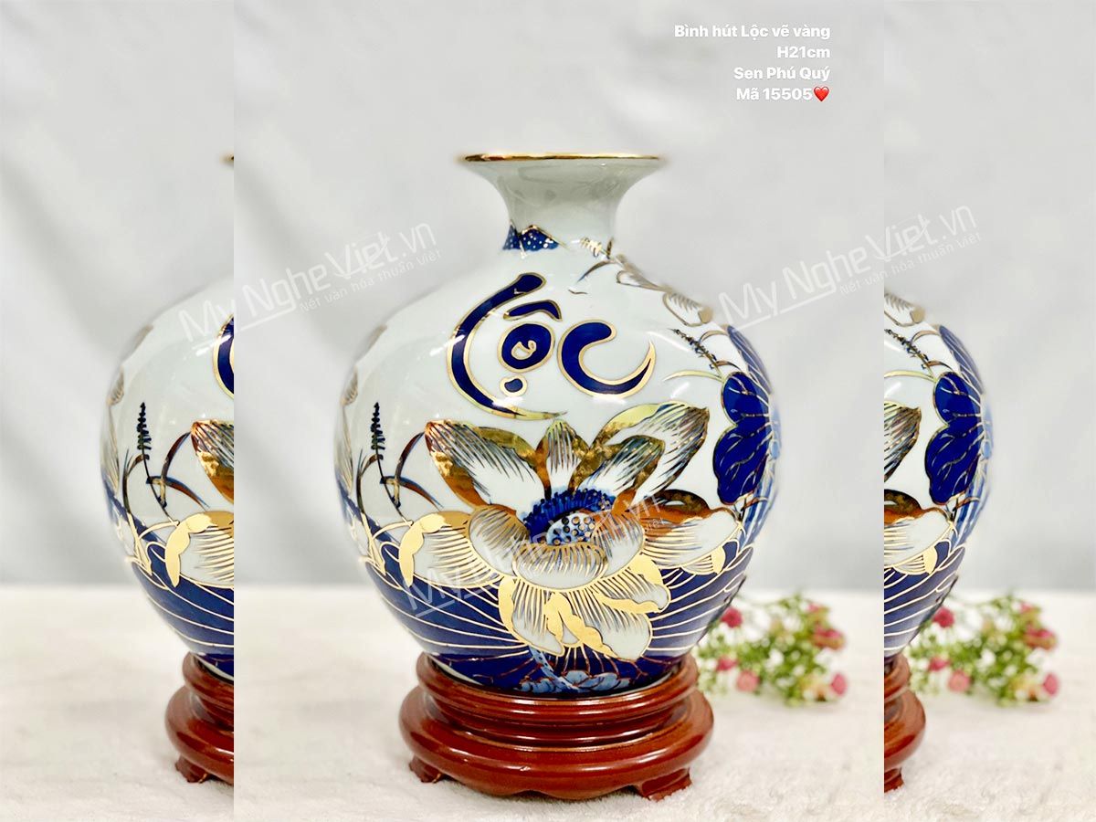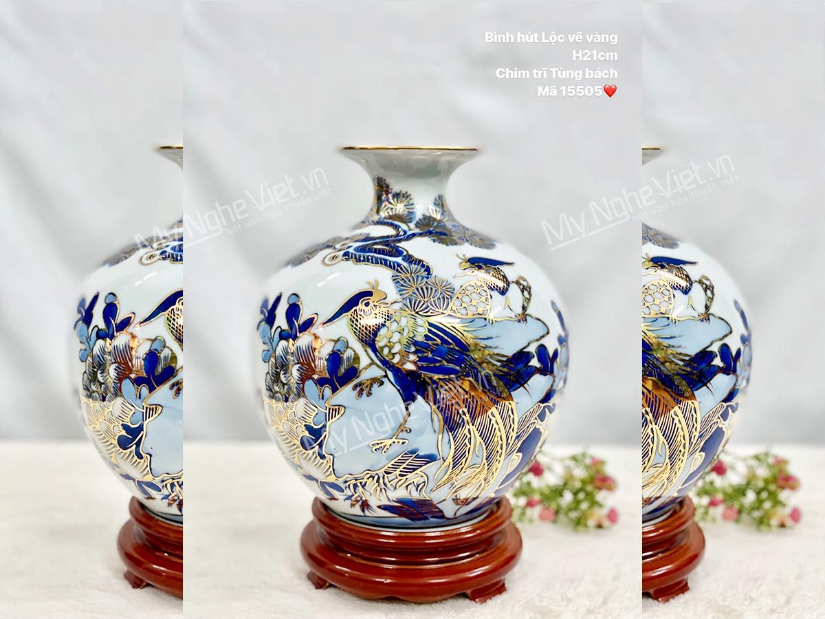 Bình hút lộc vẽ vàng gốm Bát Tràng