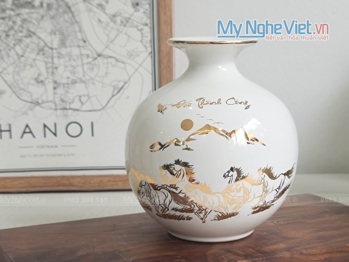 Lọ hoa dát vàng thường được trang trí với những họa tiết hoa văn gắn liền với các câu thành ngữ cầu chúc may mắn, thành công trong văn hóa Việt như thuận buồm xuôi gió, mã đáo thành công,…