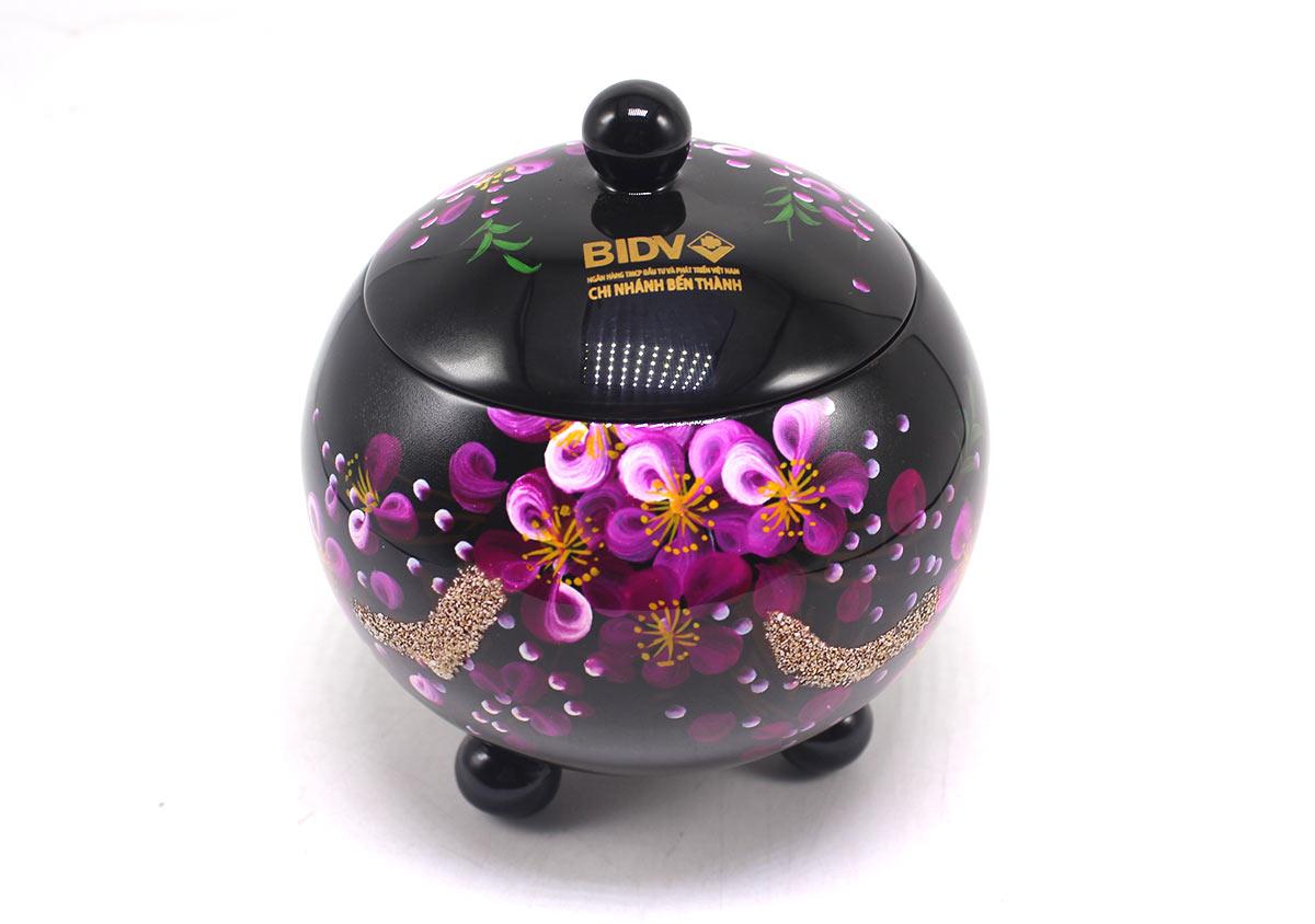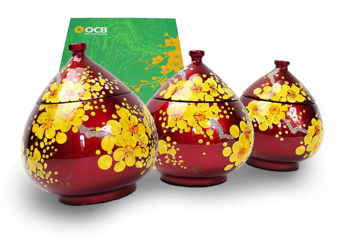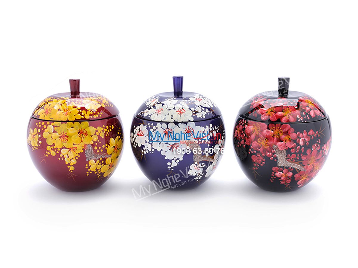 Hũ kẹo sơn mài là món quà lạ mắt và gọn gàng. Hũ không chỉ công dụng cho ngày Tết mà còn là bộ hũ trang trí trong tủ bếp rất đẹp mắt.