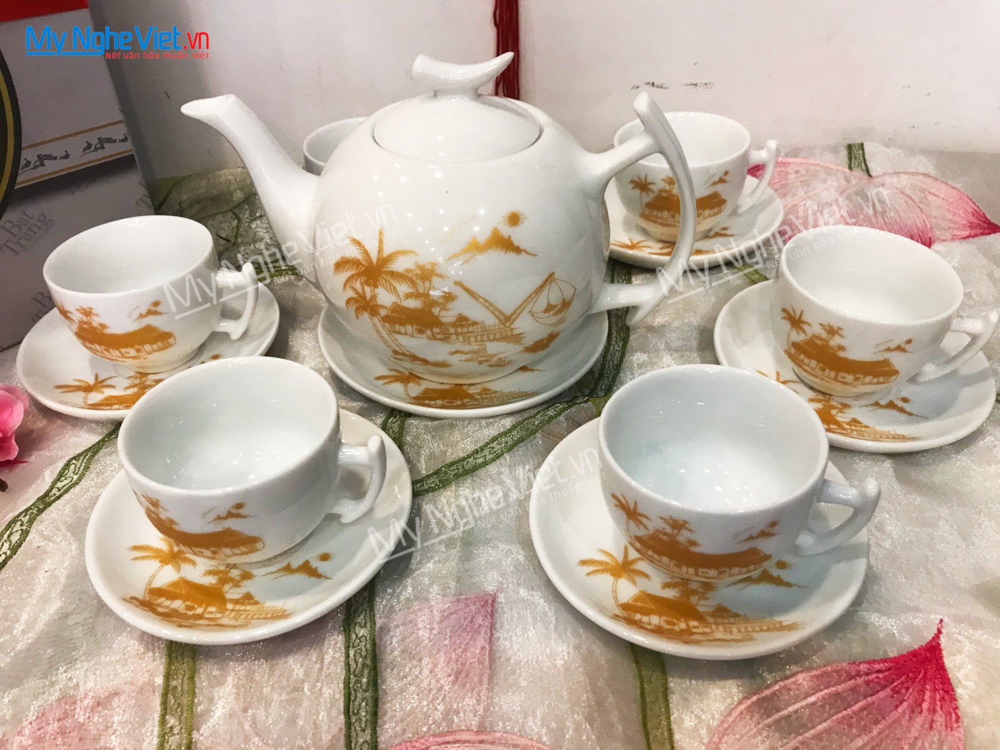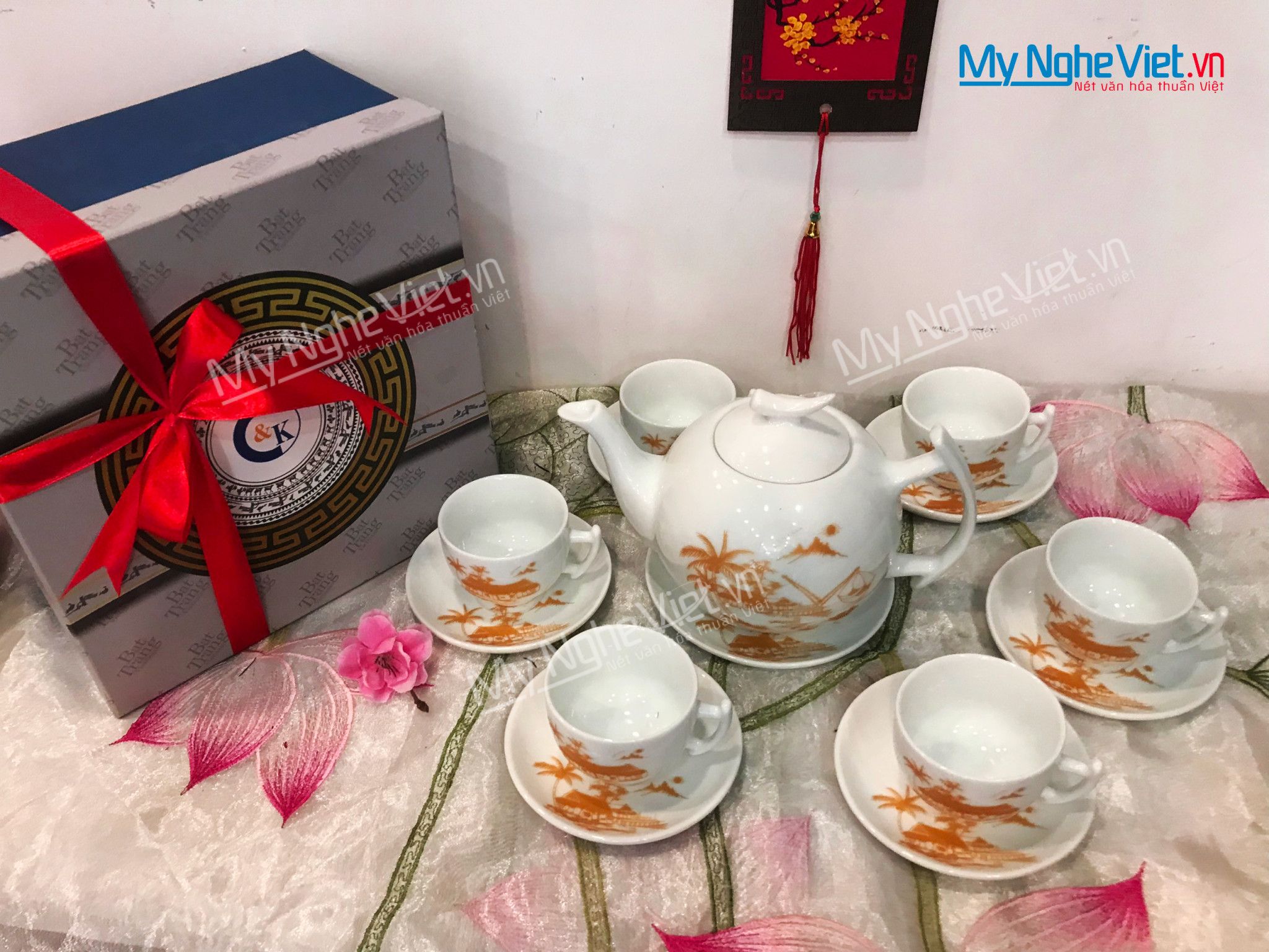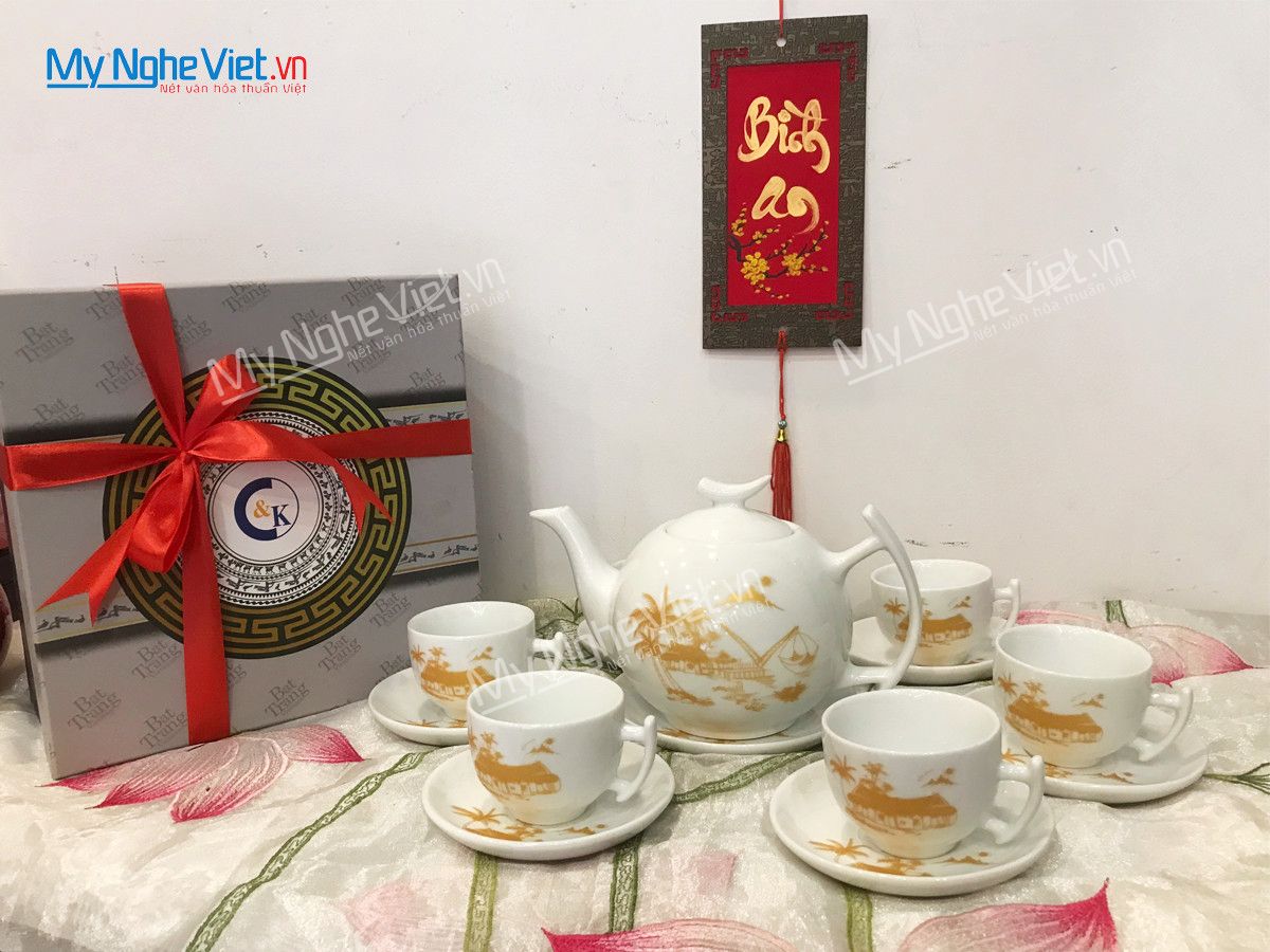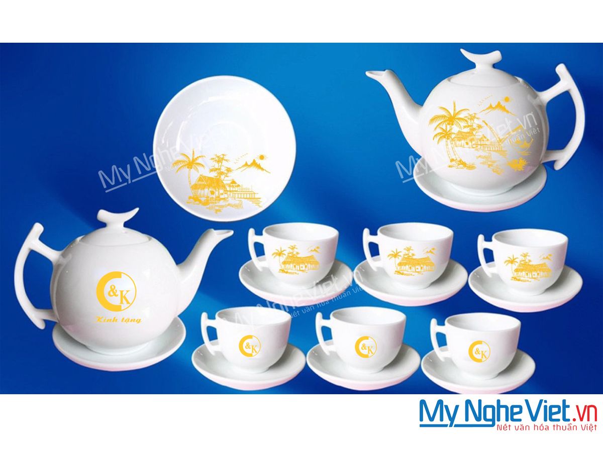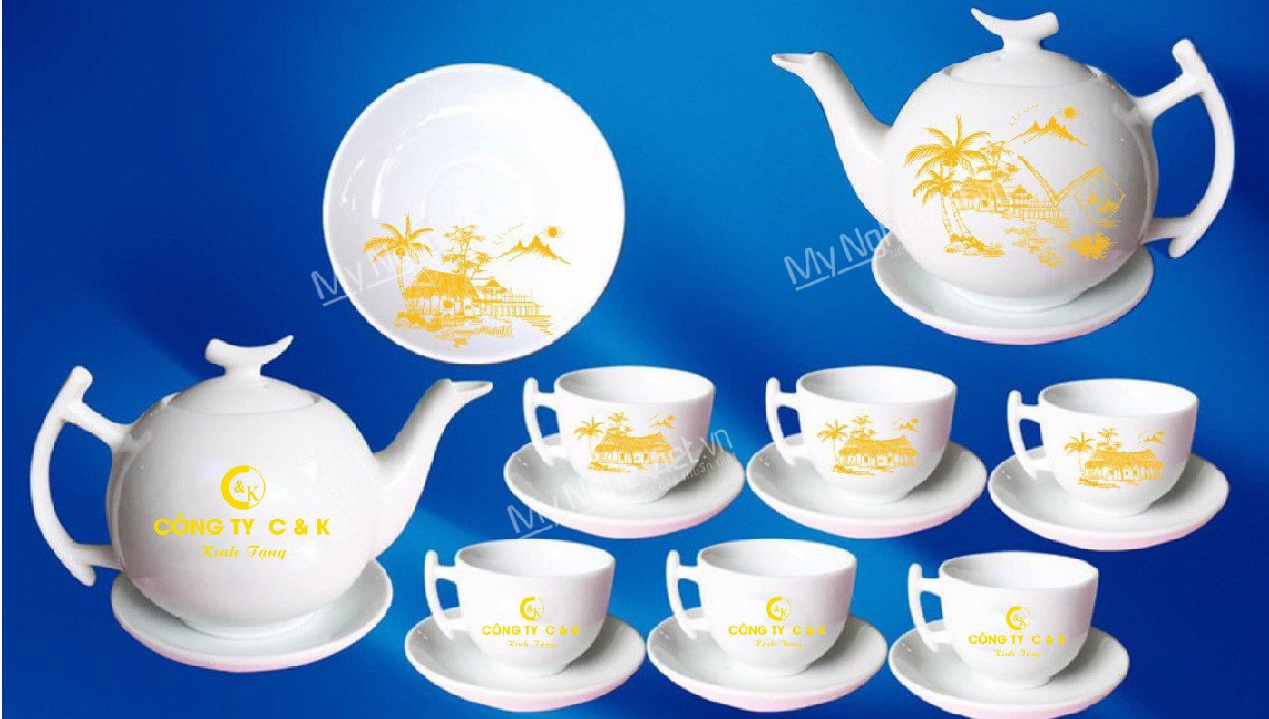 Bộ bình trà và ly sứ in logo tại Mỹ Nghệ Việt