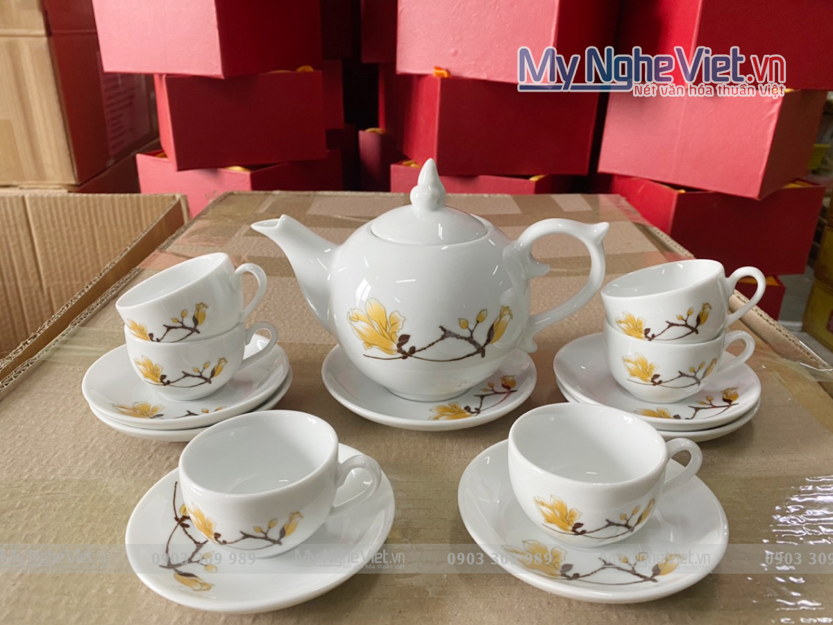 Bình trà do Mỹ Nghệ Việt cung cấp đảm bảo tiêu chuẩn hàng chính hãng, Quý Doanh nghiệp có thể in logo Doanh nghiệp lên Bộ bình trà (bình, tách hay cả đĩa lót) để tặng khách hàng vào các hội nghị, sự kiện hay kỷ niệm thành lập công ty, Quà tri ân Tết vào cuối năm, …Mỹ Nghệ Việt cam kết cung cấp sản phẩm bình trà in logo giá tốt nhất thị trường.
