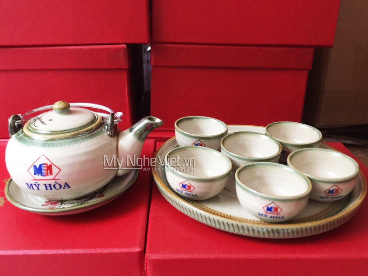 Bộ bình trà Bát Tràng in logo
