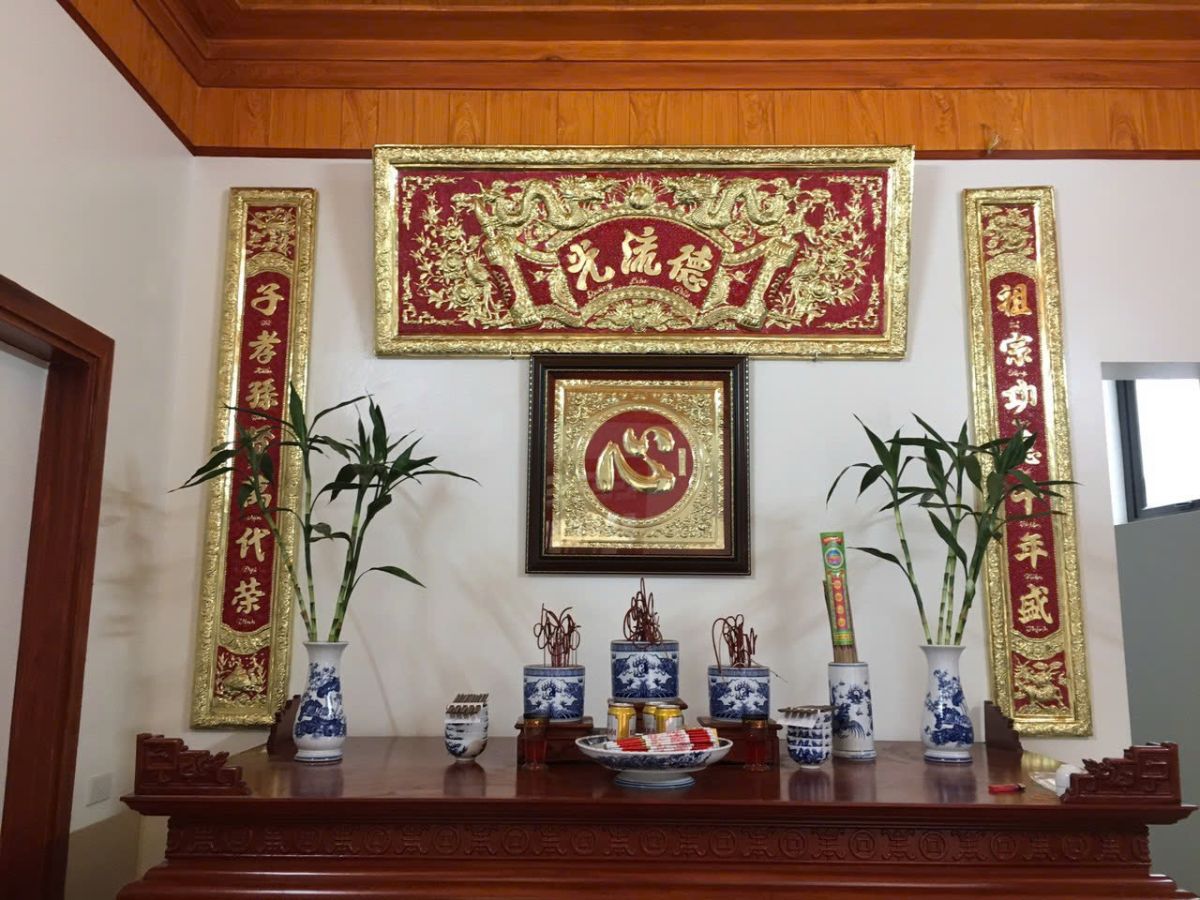 - Ý nghĩa tâm linh: Các chữ Hán trên hoành phi và câu đối mang ý nghĩa tốt đẹp về công đức tổ tiên, sự hiếu thảo của con cháu, và mong ước gia đình thịnh vượng.