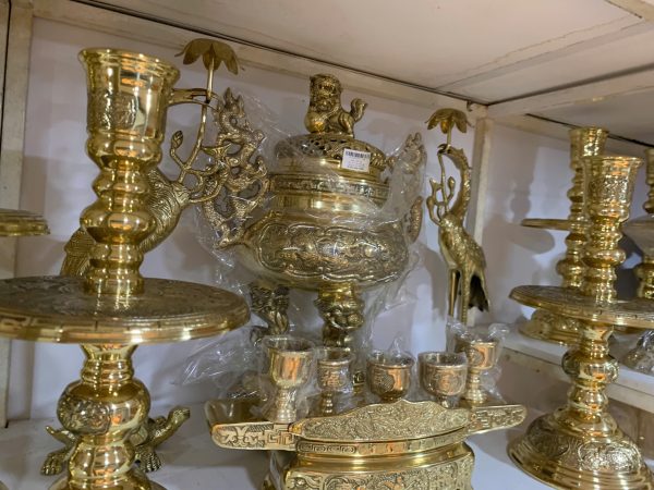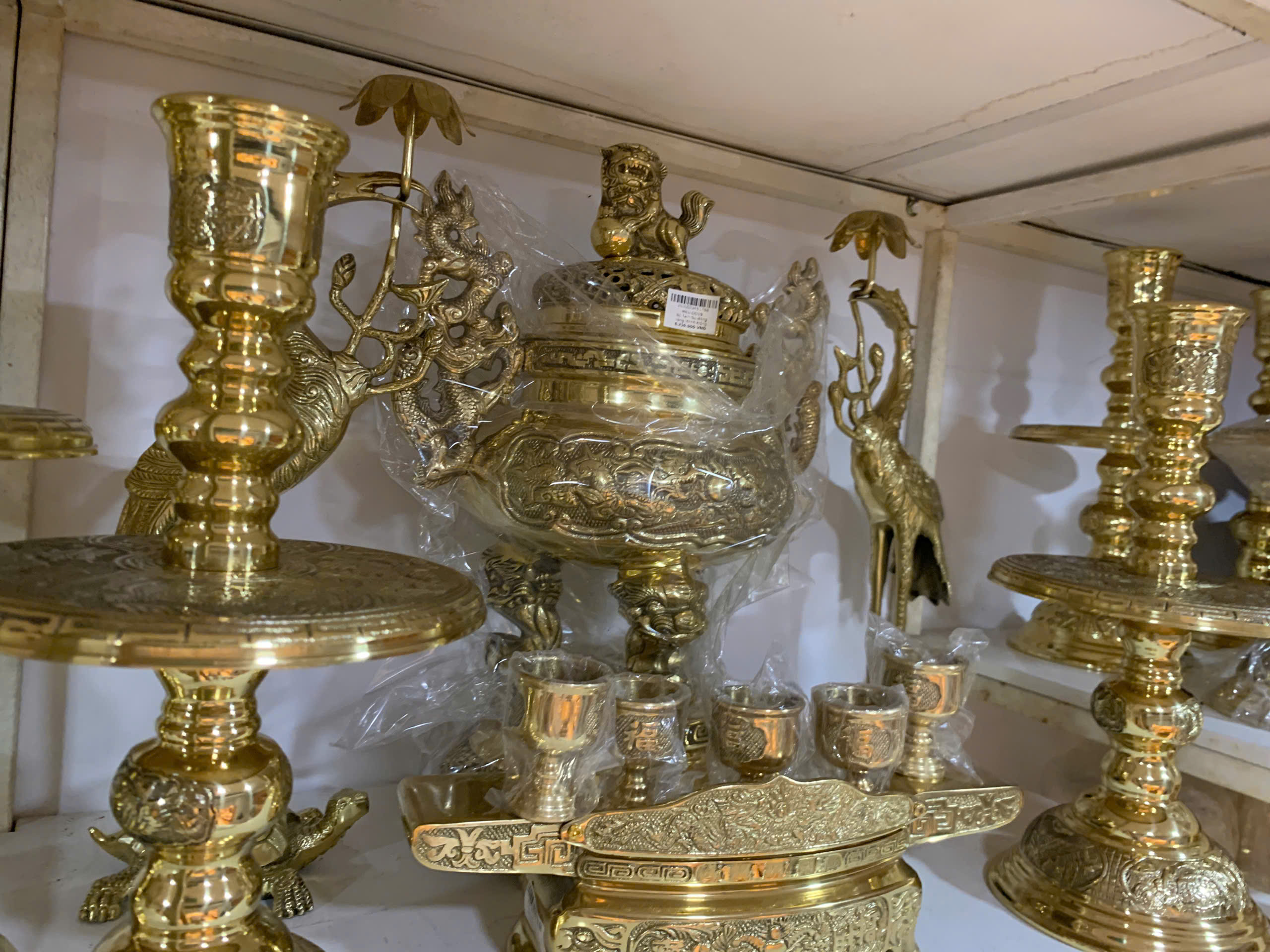Đồ đồng Đại Bái từ lâu đã nổi tiếng cả nước và vươn tầm quốc tế nhờ chất lượng vượt trội và giá trị văn hóa sâu sắc. Bộ Ngũ Sự Đồng Vàng Đỉnh không chỉ là vật phẩm thờ cúng mà còn là tác phẩm nghệ thuật, mang đến vẻ đẹp trang trọng, linh thiêng và trường tồn cho không gian thờ tự.