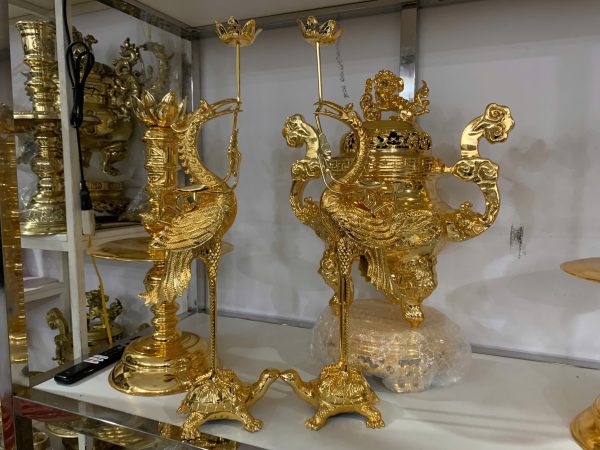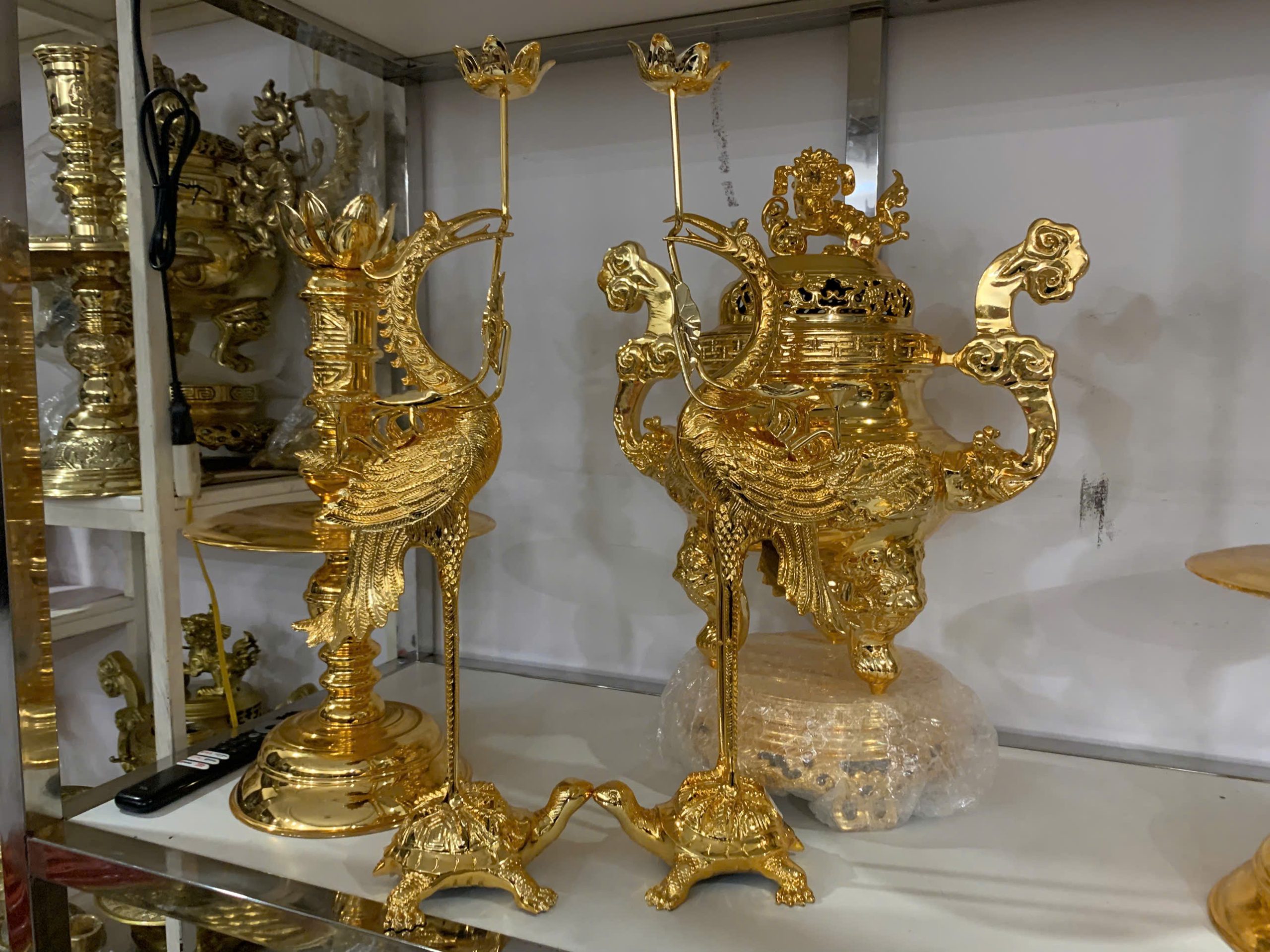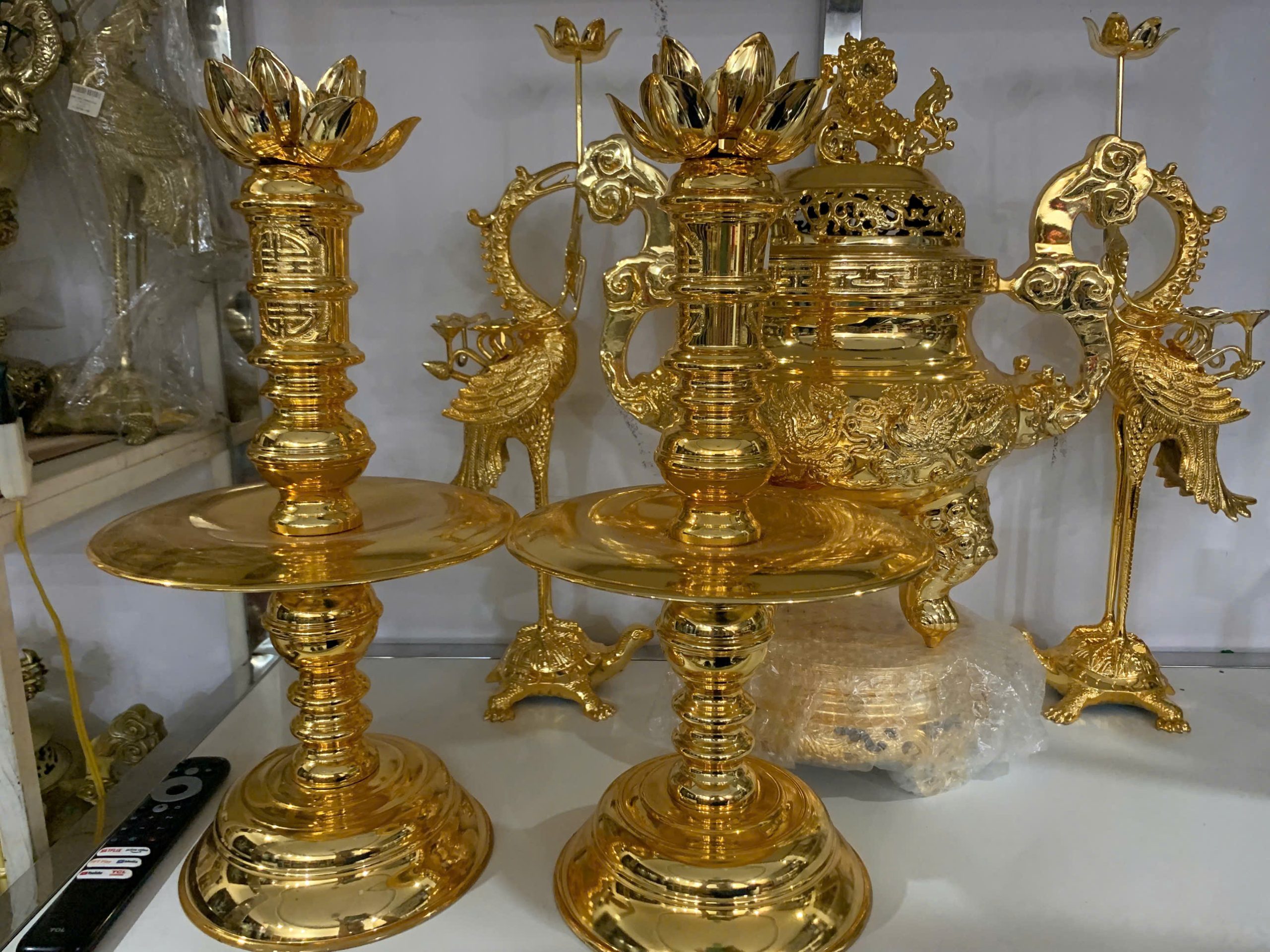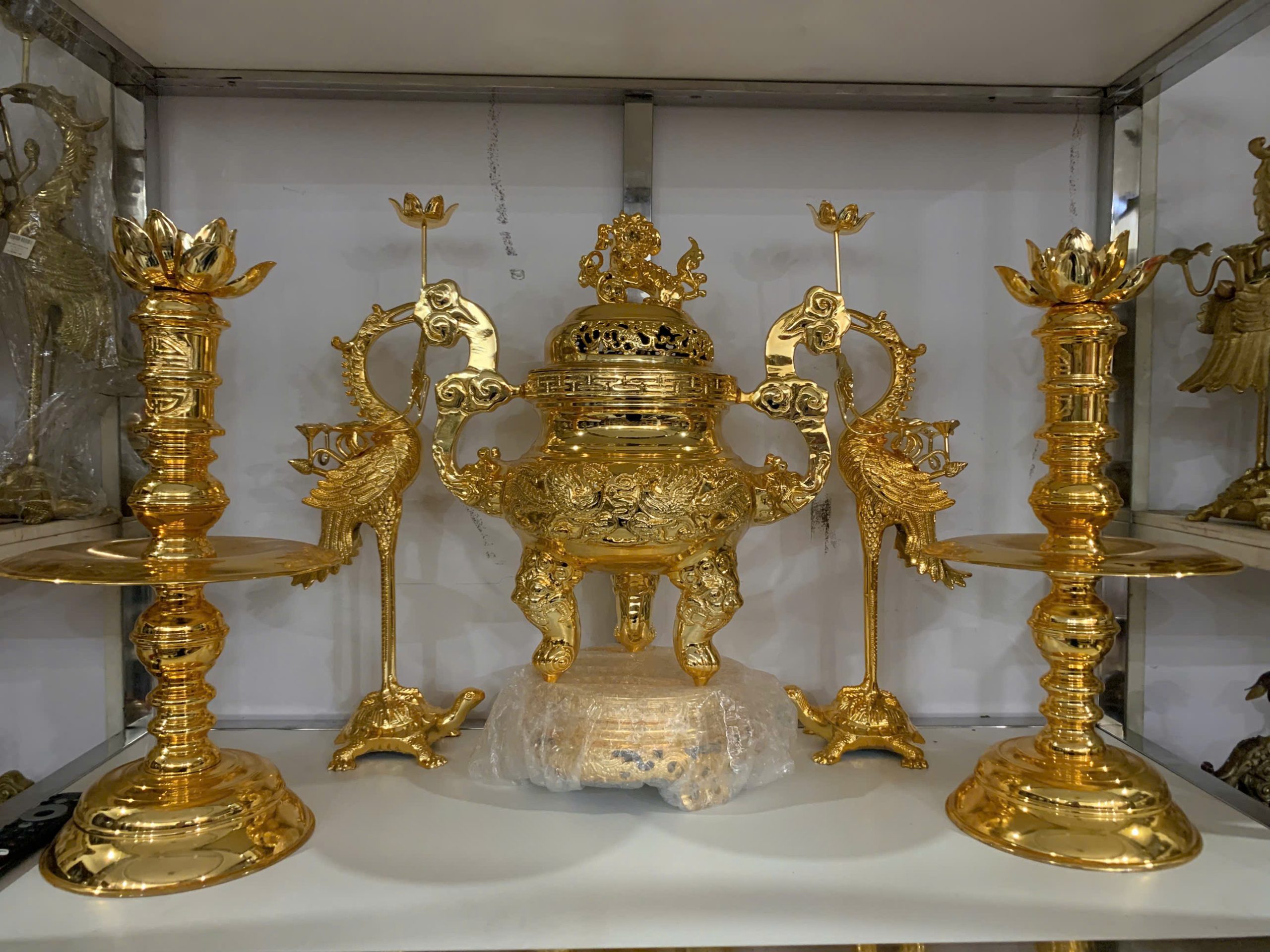 Các sản phẩm đồ đồng từ làng nghề Đại Bái, bao gồm cả bộ ngũ sự mạ vàng, nổi tiếng với chất lượng vượt trội và độ bền theo thời gian.