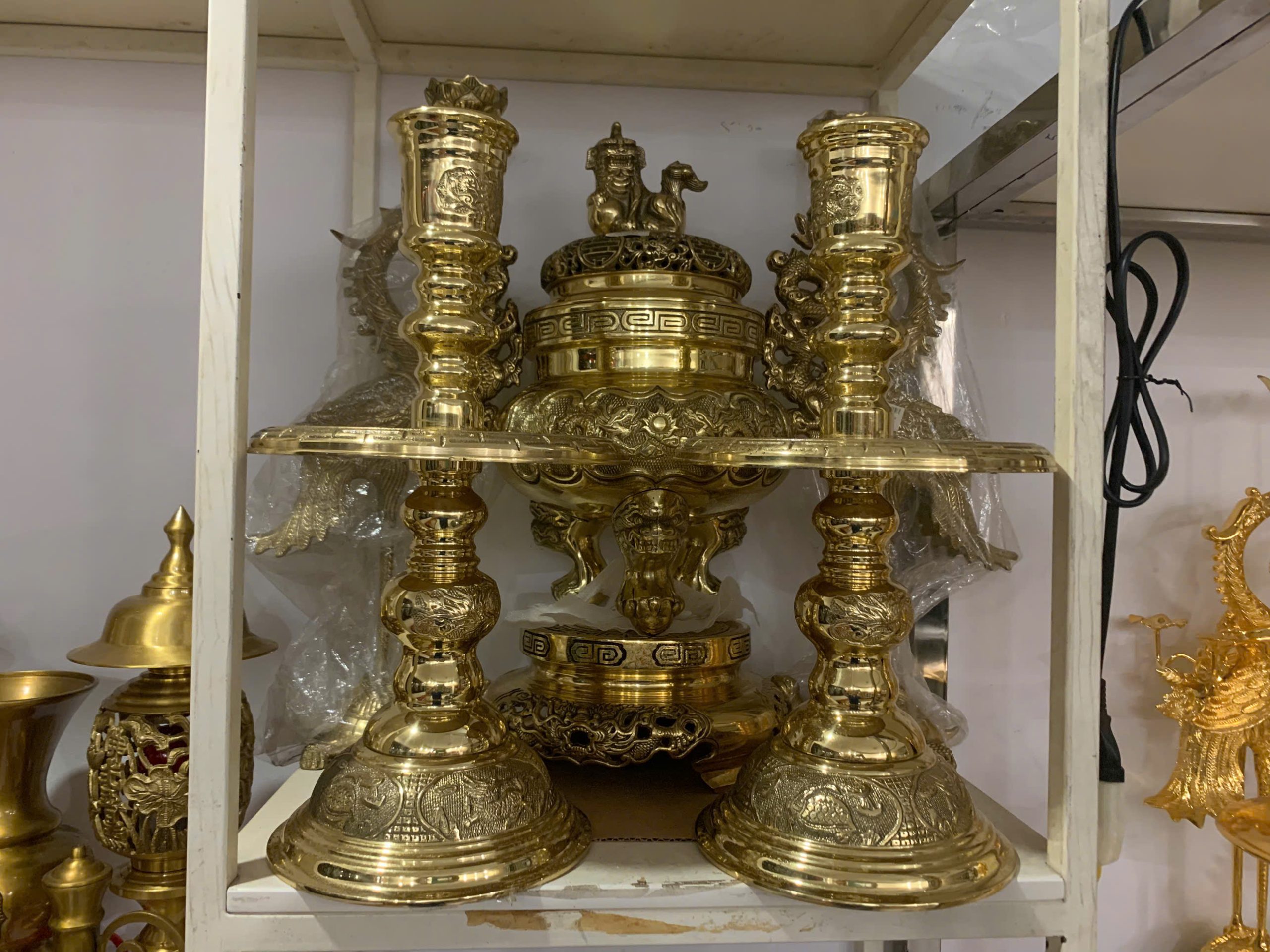 Đồ đồng Đại Bái từ lâu đã nổi tiếng cả nước và vươn tầm quốc tế nhờ chất lượng vượt trội và giá trị văn hóa sâu sắc. Bộ Ngũ Sự Đồng Vàng Đỉnh không chỉ là vật phẩm thờ cúng mà còn là tác phẩm nghệ thuật, mang đến vẻ đẹp trang trọng, linh thiêng và trường tồn cho không gian thờ tự.