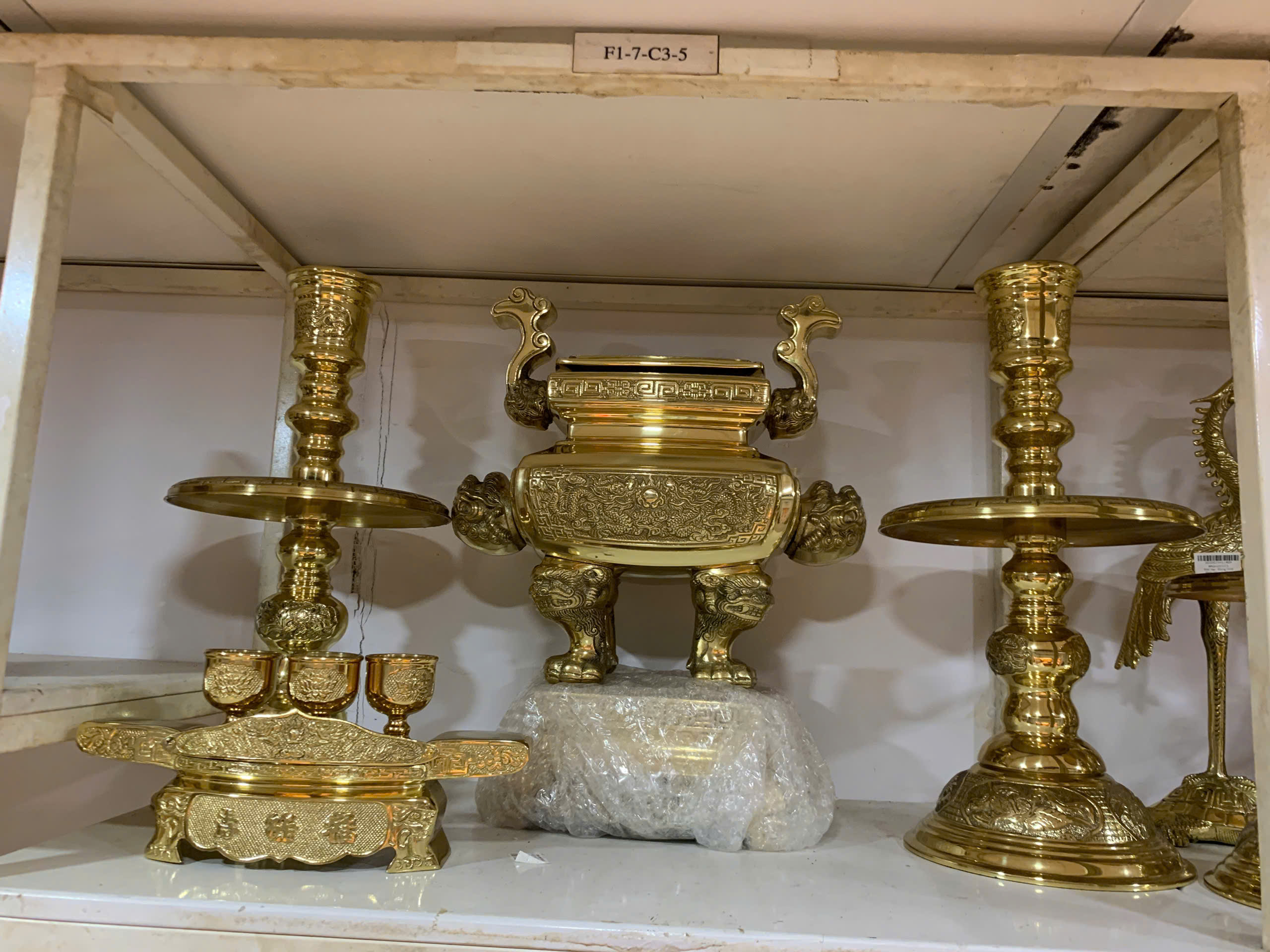 - 1 đỉnh đồng: nắp hình nghê hoặc rồng, chạm khắc tinh xảo