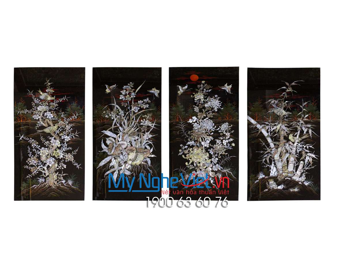 Bộ tranh sơn mài Mai lan Cúc Trúc đại diện cho trung tứ quân tử thích hợp để làm quà tặng, trang trí nhà cửa…. thể hiện tinh thần khí khái, hào sảng của gia chủ