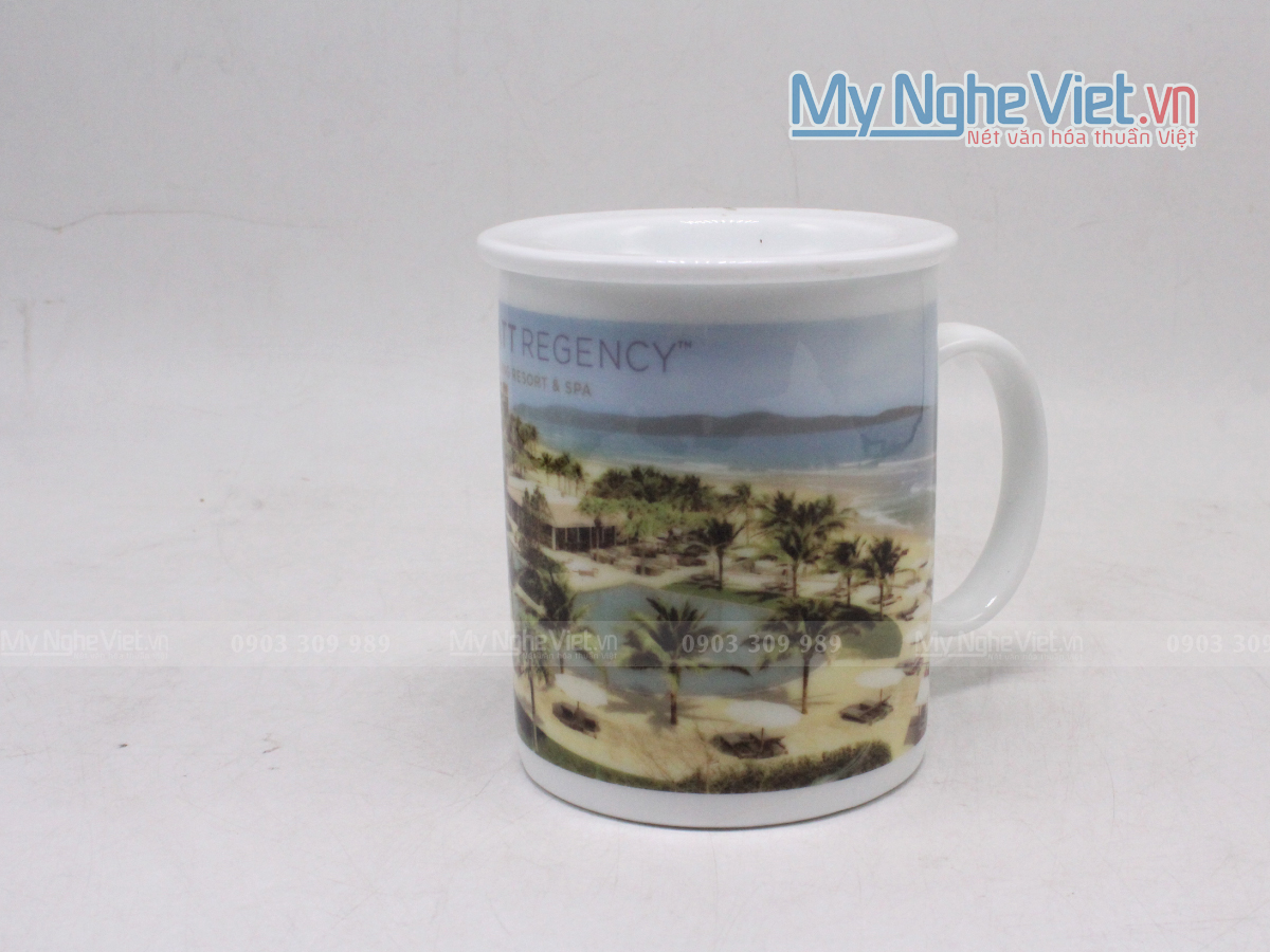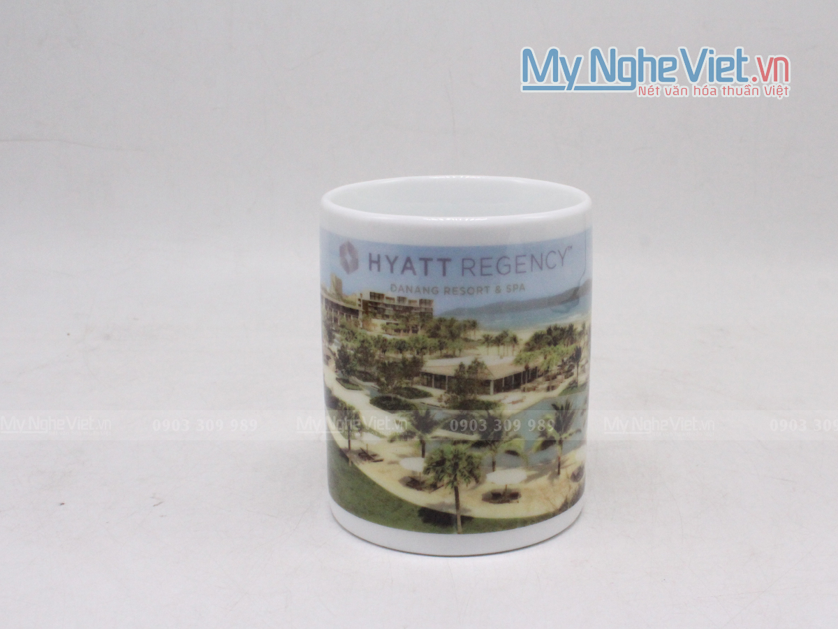 Cốc sứ có quai gốm Bát Tràng in logo Hyatt