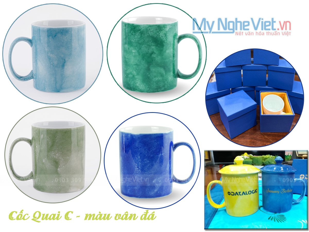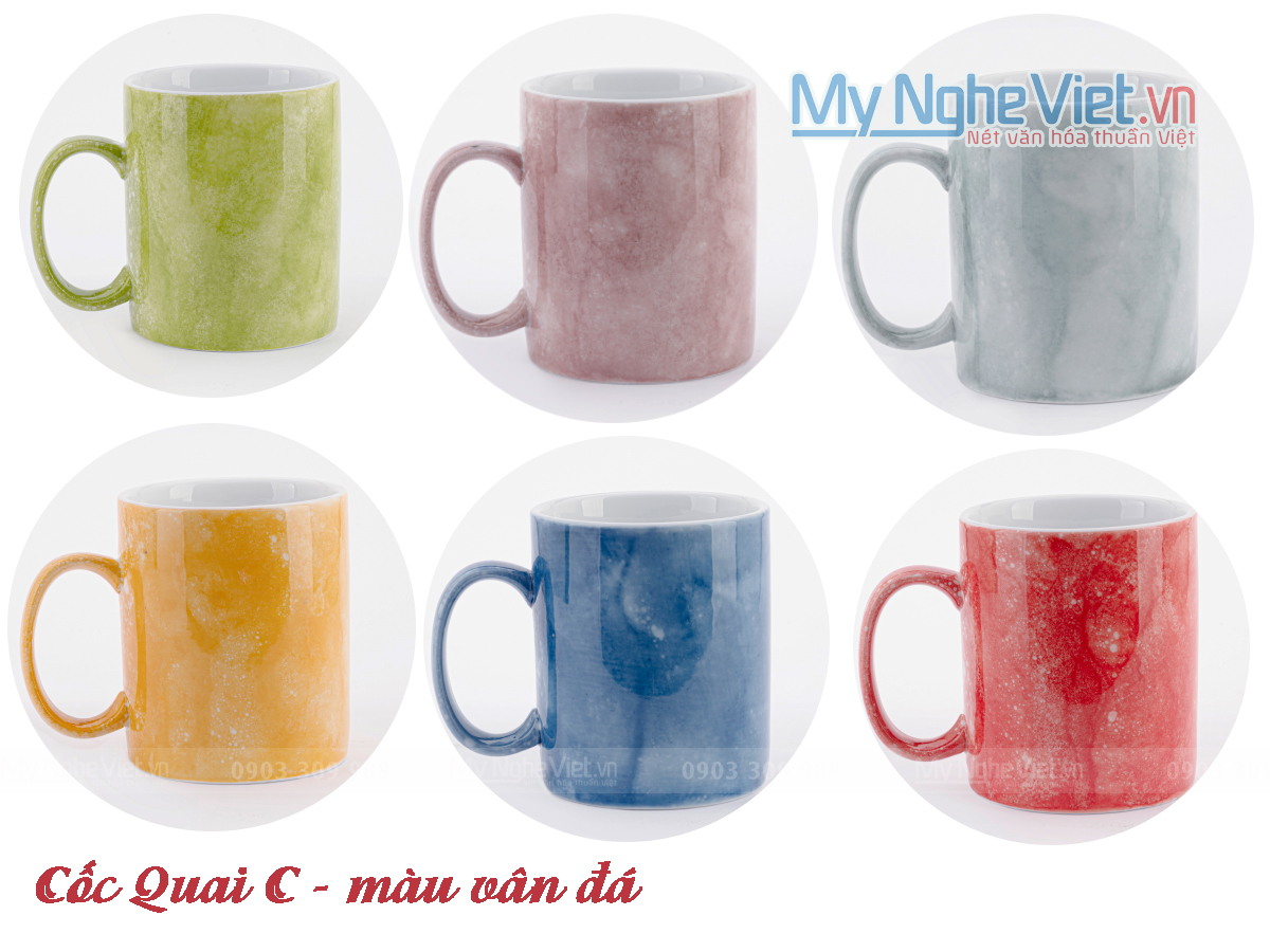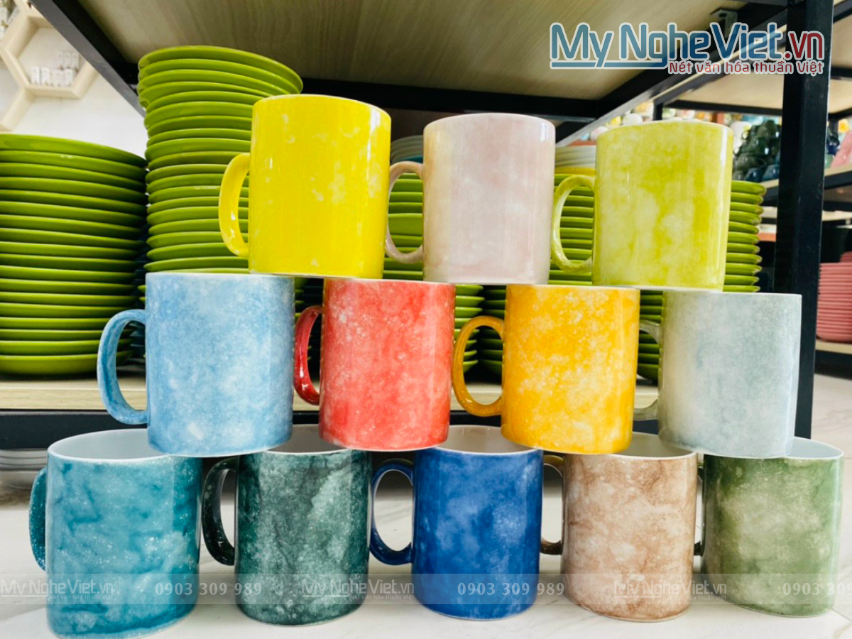 Giá cả thì ly men màu cao dường như gấp đôi vì hàng làm màu kỳ công và hao hụt nhiều, cùng chúng tôi ngắm dòng ly sứ Quai C có màu như thế nào nhé.