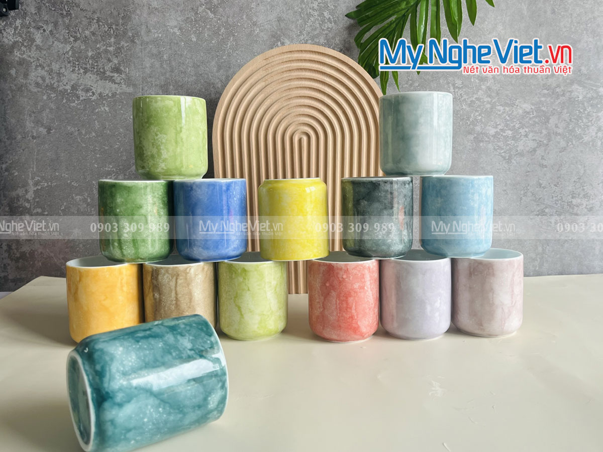 Cốc sứ Bát Tràng men vân đá in logo doanh nghiệp – Món quà tặng ý nghĩa và sang trọng