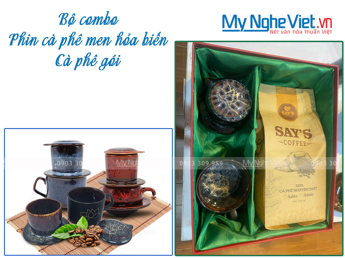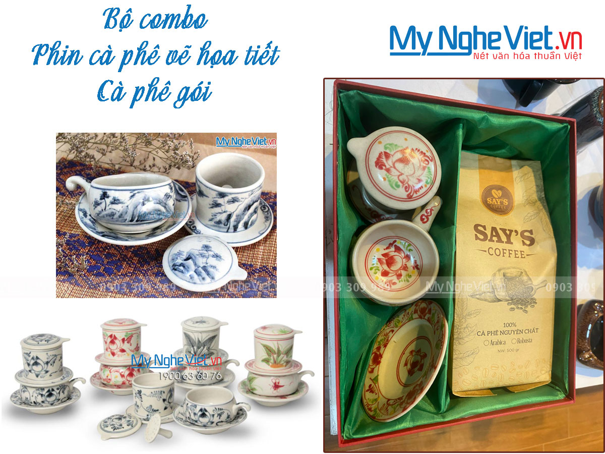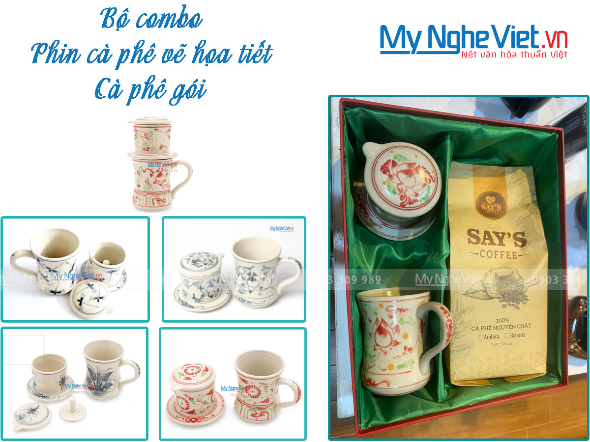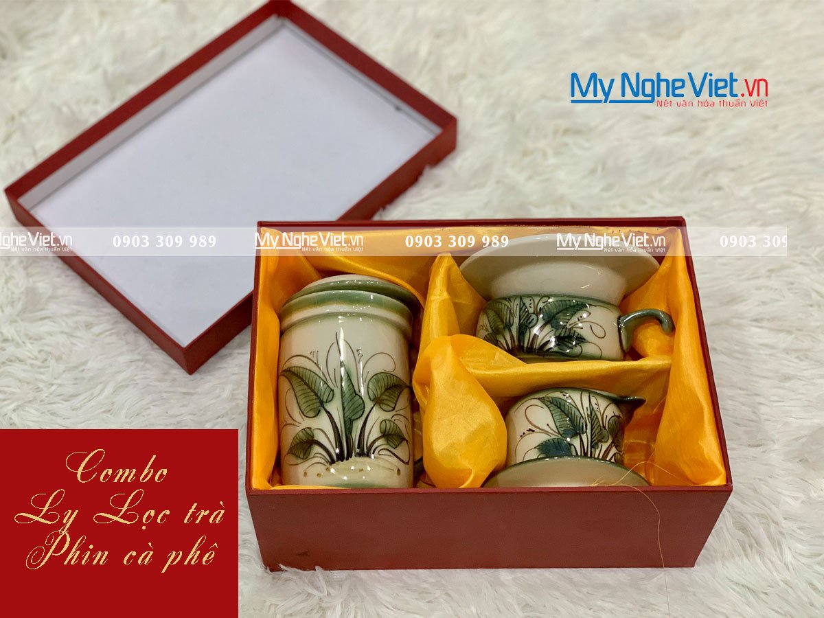 Đây là set quà tặng bạn có thể thay đổi mẫu phin cà phê- hoa văn, cũng như có thể để phin gốm cùng màu với ly lọc trà nhé.