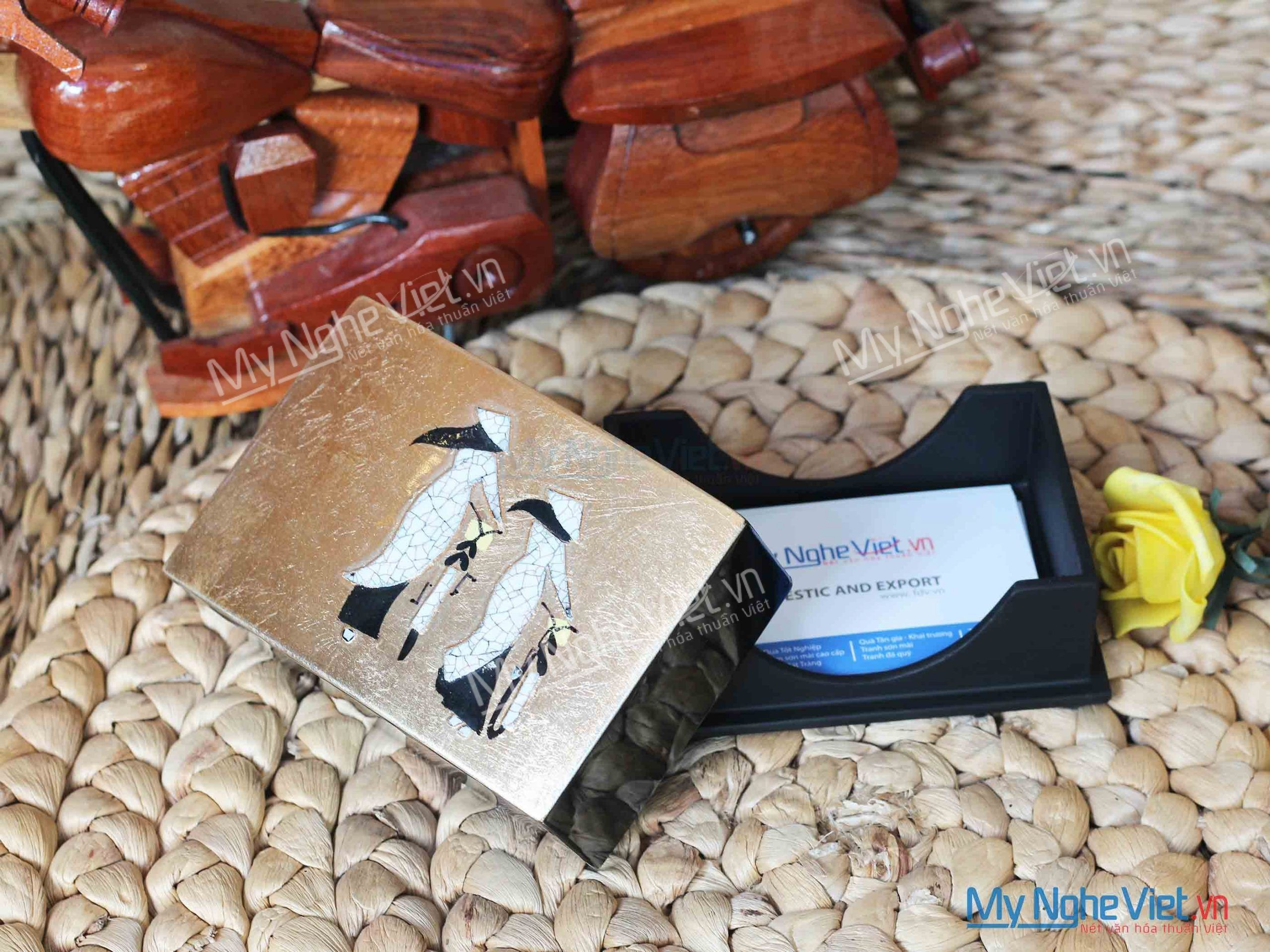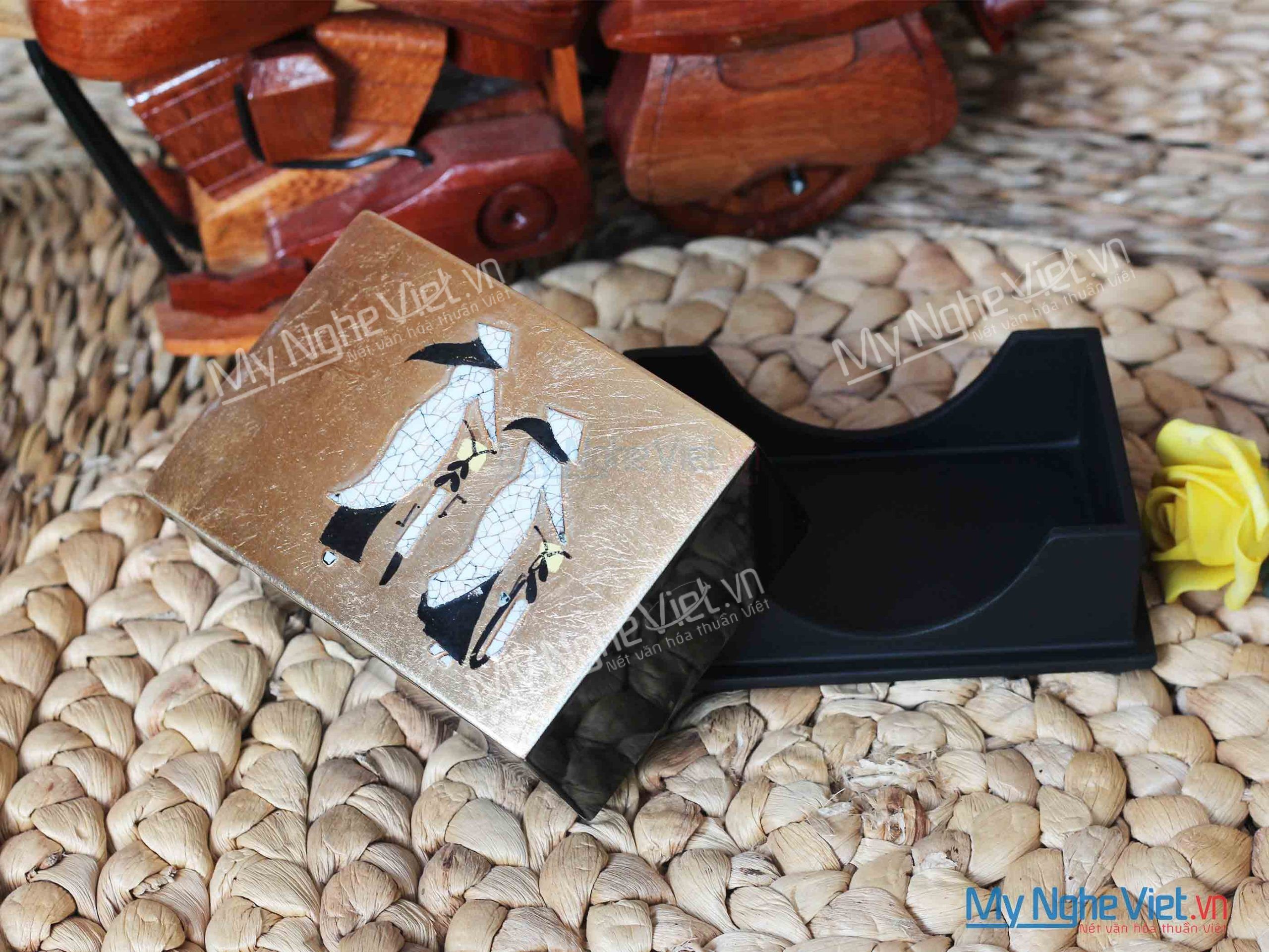 Hộp đựng card visit sơn mài cô gái cẩn vỏ trứng dát vàng, được in ấn logo sang trọng. Cùng Mỹ Nghệ Việt tham khảo một số mẫu hộp đựng card visit hay còn gọi đựng name card.