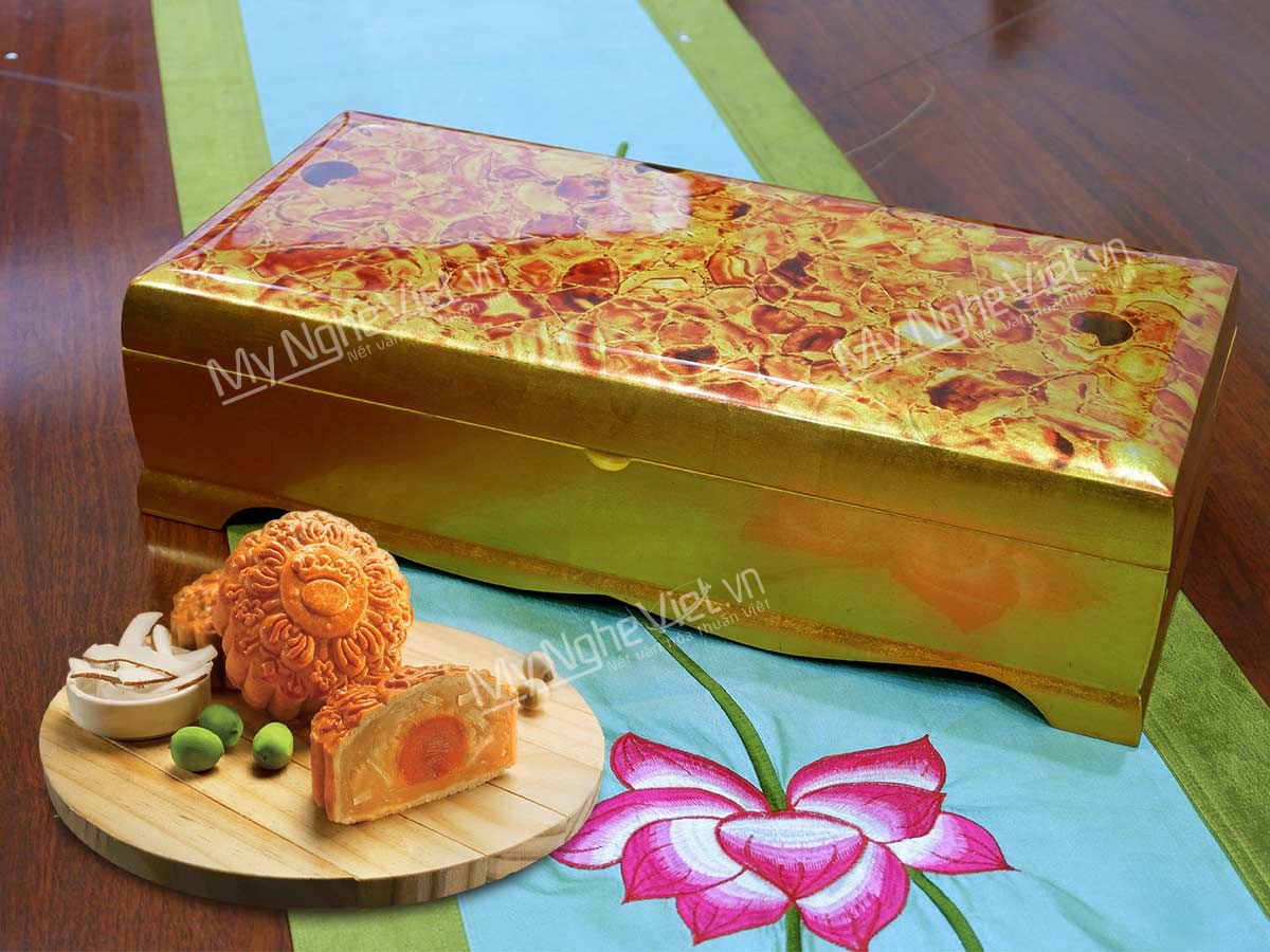 Hộp đựng bánh trung thu bằng sơn mài được các đối tác biết đến như là yếu tố tôn vinh sản phẩm, thương hiệu của nhà làm bánh trung thu, hoặc là món quà tặng sang trọng, đẳng cấp cho các doanh nghiệp gửi đến đối tác của mình. Hộp đựng bánh Trung Thu sơn mài nói riêng và sản phẩm sơn mài nói chung tại Mỹ Nghệ Việt luôn được kiểm soát chất lượng cực kỳ chặt chẽ. Quá trình sản xuất qua nhiều giai đoạn, hộp sơn mài được sơn và mài kỹ lưỡng 5-7 lớp sơn mài cao cấp. Quá trình kiểm tra chất lượng qua 2,3 trạm. Do đó, sản phẩm của Mỹ Nghệ Việt dễ dàng đáp ứng yêu cầu khắt khe của khách hàng.