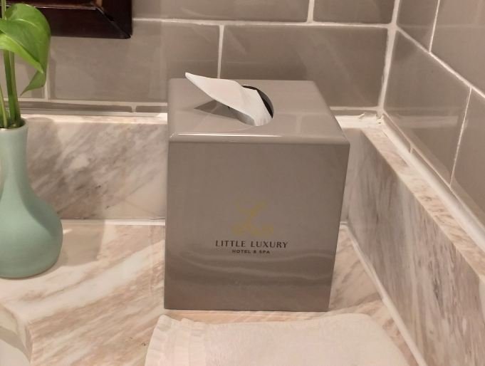 Dụng cụ vô cùng quan trọng mà các khách sạn không nên bỏ qua- Hộp được để khu vực phòng tắm, phòng khách với lượng giấy vừa đủ, toát lên sự sang trọng của gian phòng.
