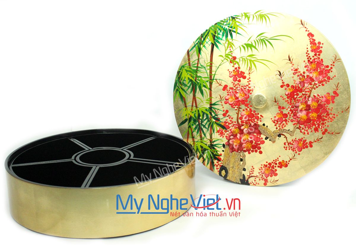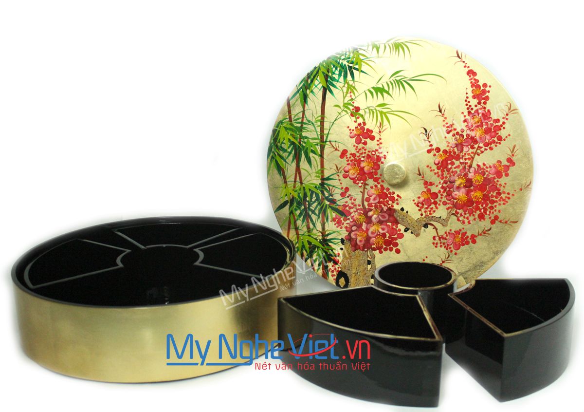Hộp mứt sơn mài truyền thống là sản phẩm tuyệt vời để bàn tiếp khách của gia đình bạn được gọn gàng, ngăn nắp, sạch sẽ và lịch sự, trang hoàng hơn. Hơn thế, chúng còn thổi vào nhà bạn hồn văn hóa đặc trưng Việt Nam với hình ảnh của những nhánh mai, nhánh đào, nhánh tre, cánh vạc,….