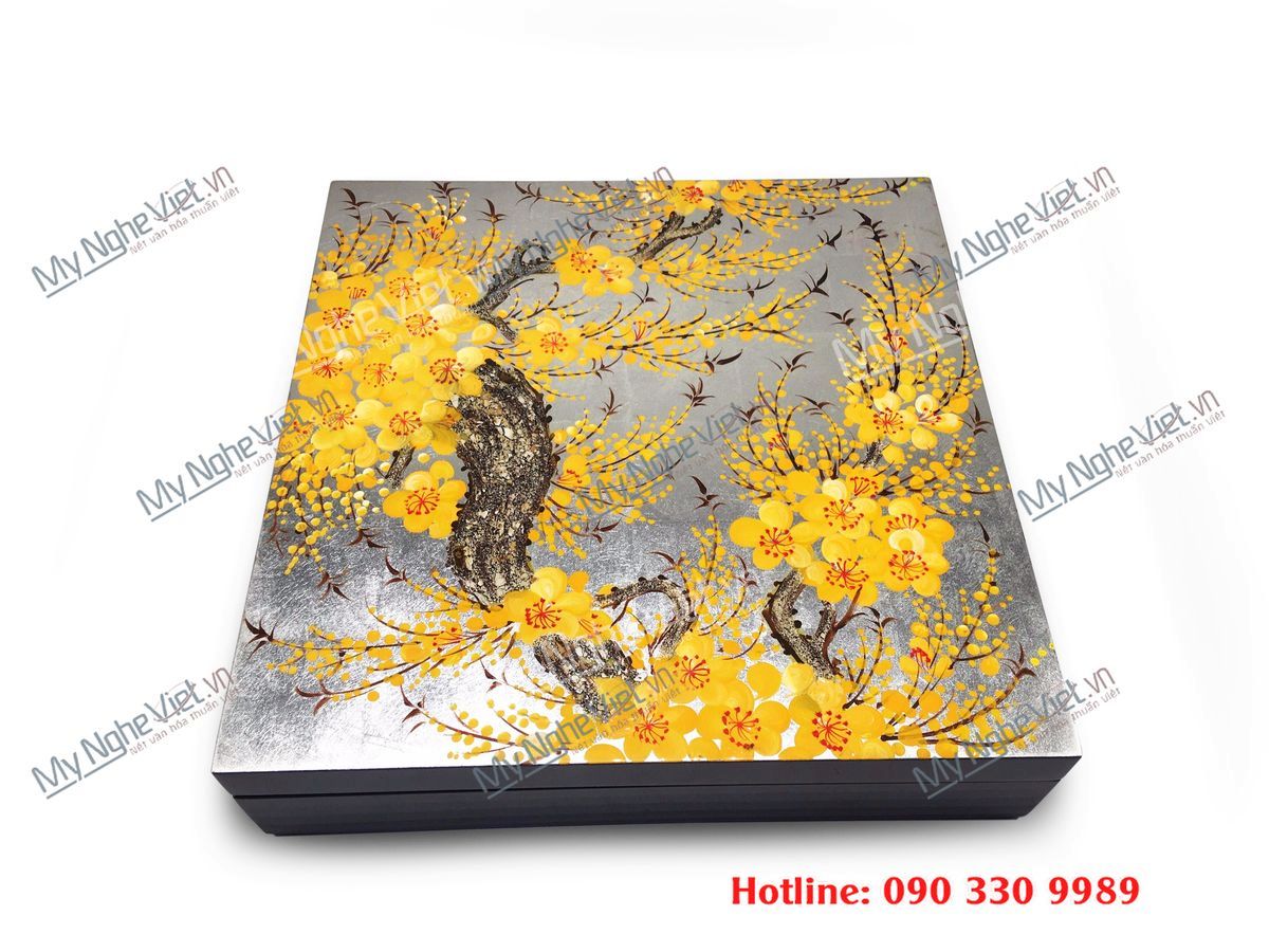 Thấu hiểu được những điều bất tiện đó, Mỹ Nghệ Việt giới thiệu đến bạn bộ sản phẩm sơn mài “cực phẩm” cho ngày Tết thêm màu sắc. KHAY – HỘP ĐỰNG BÁNH MỨT SƠN MÀI Đắp Bạc Vẽ Mai Vàng 4 ngăn: