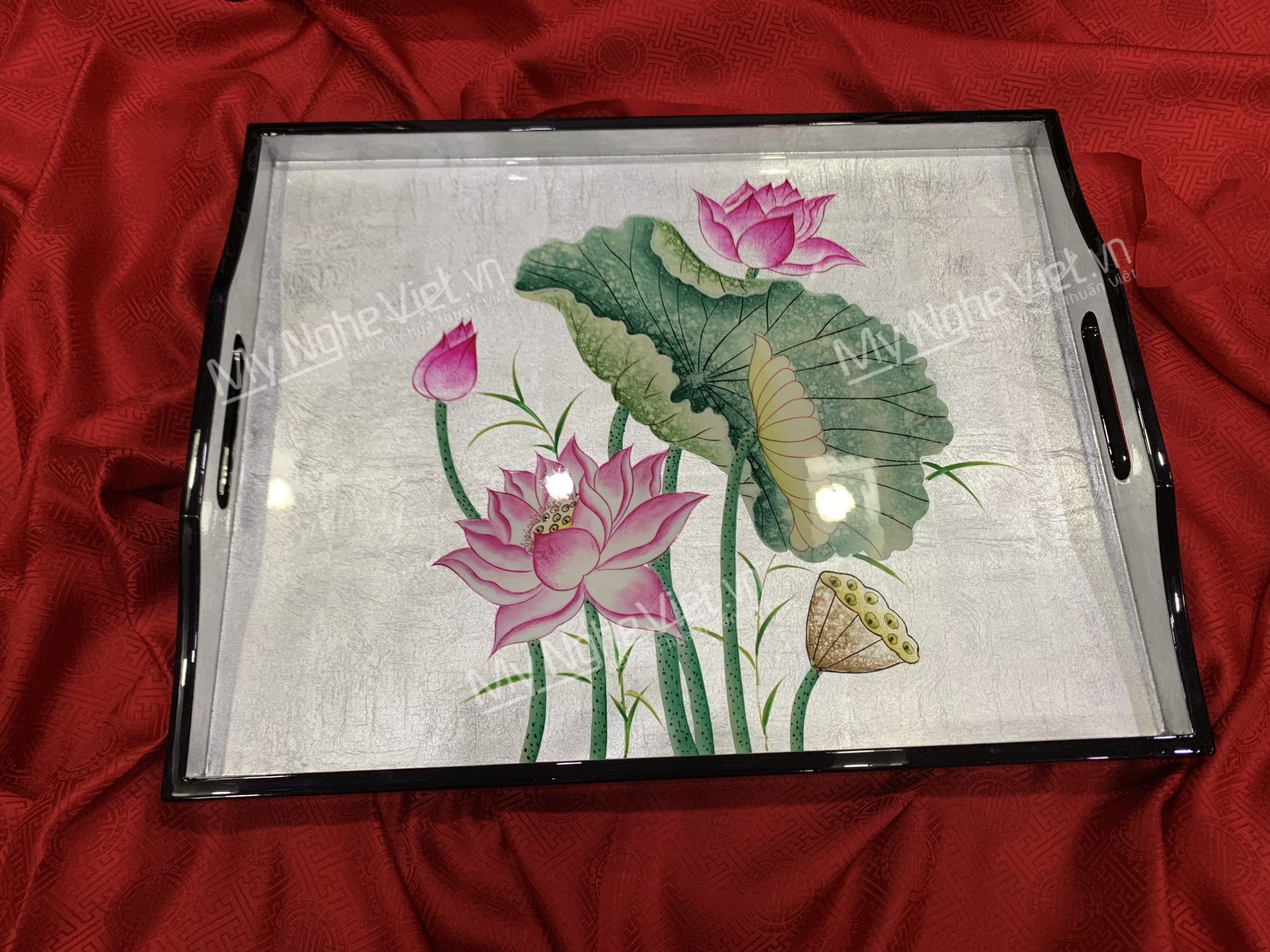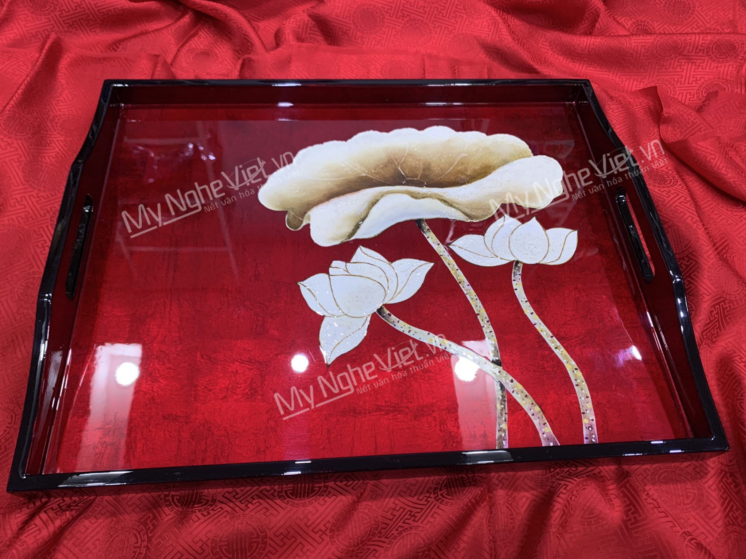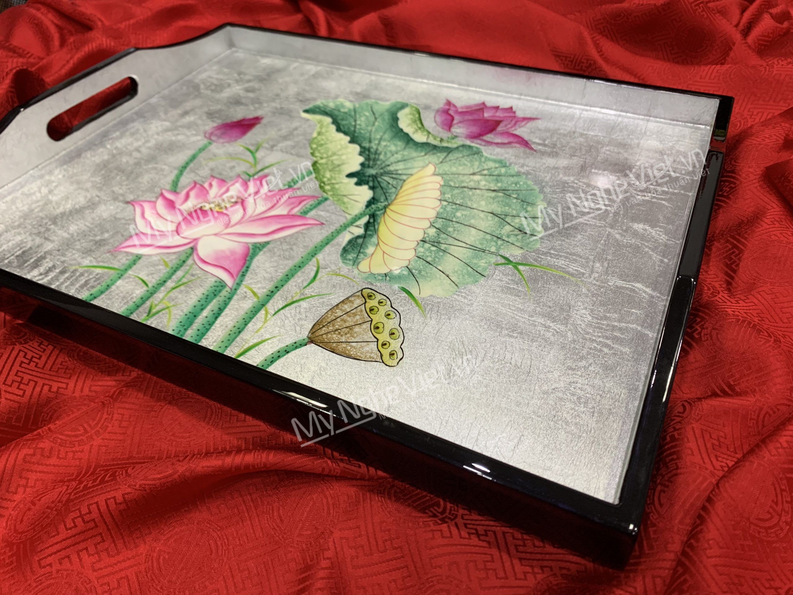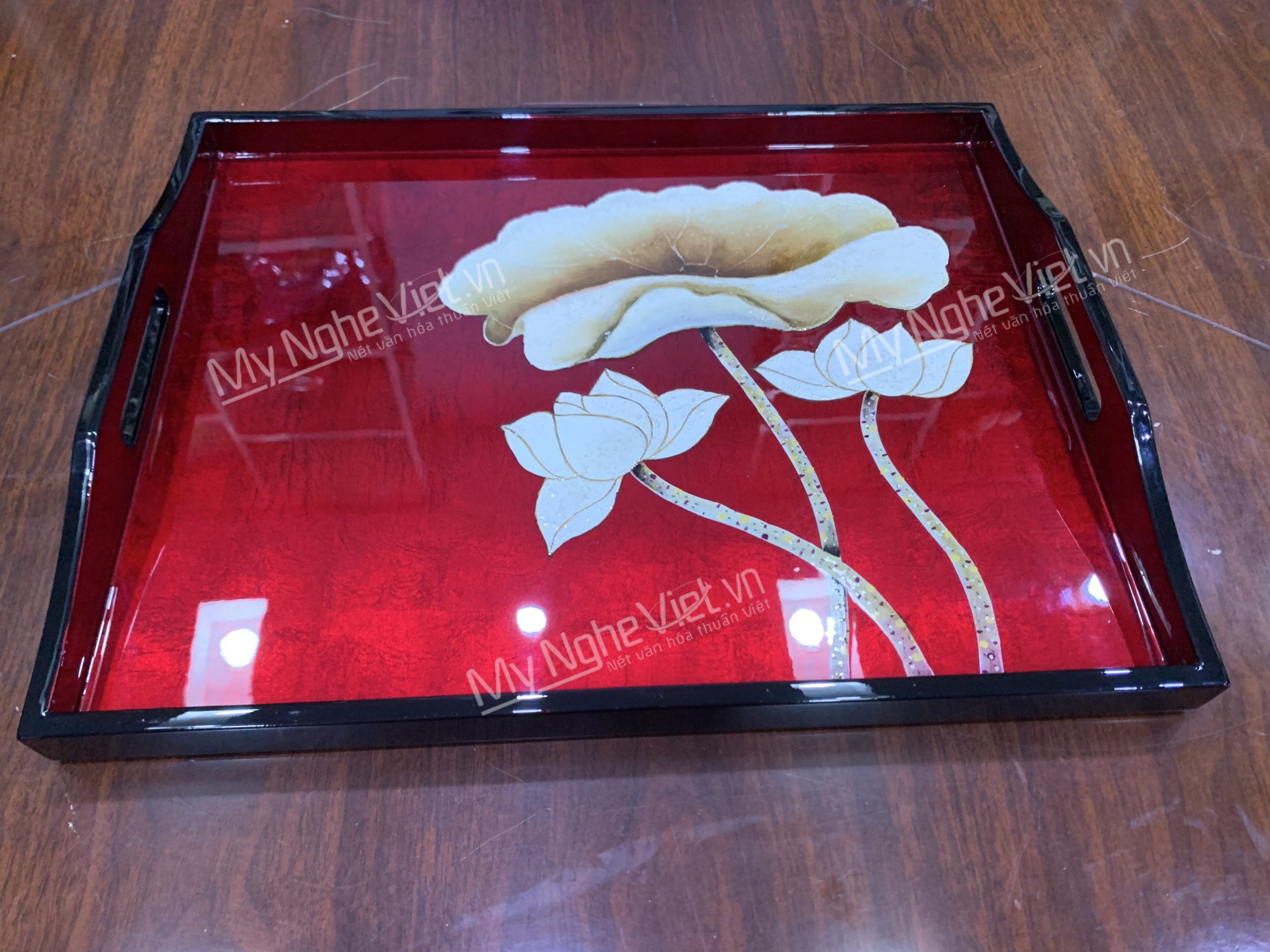 Khay sơn mài vẽ sen cao cấp -Lacquer Trays