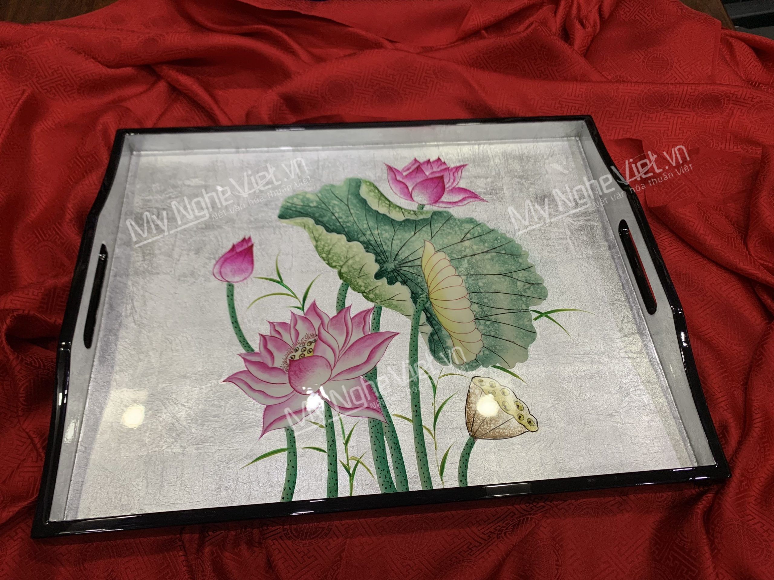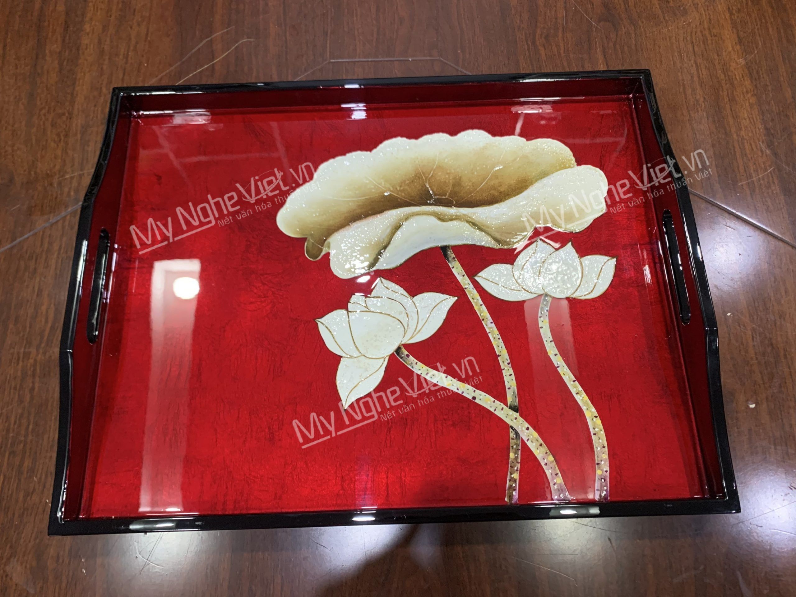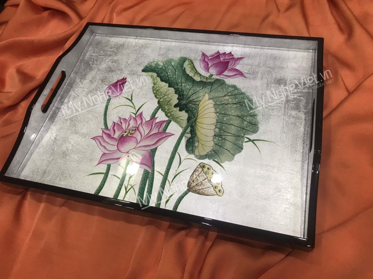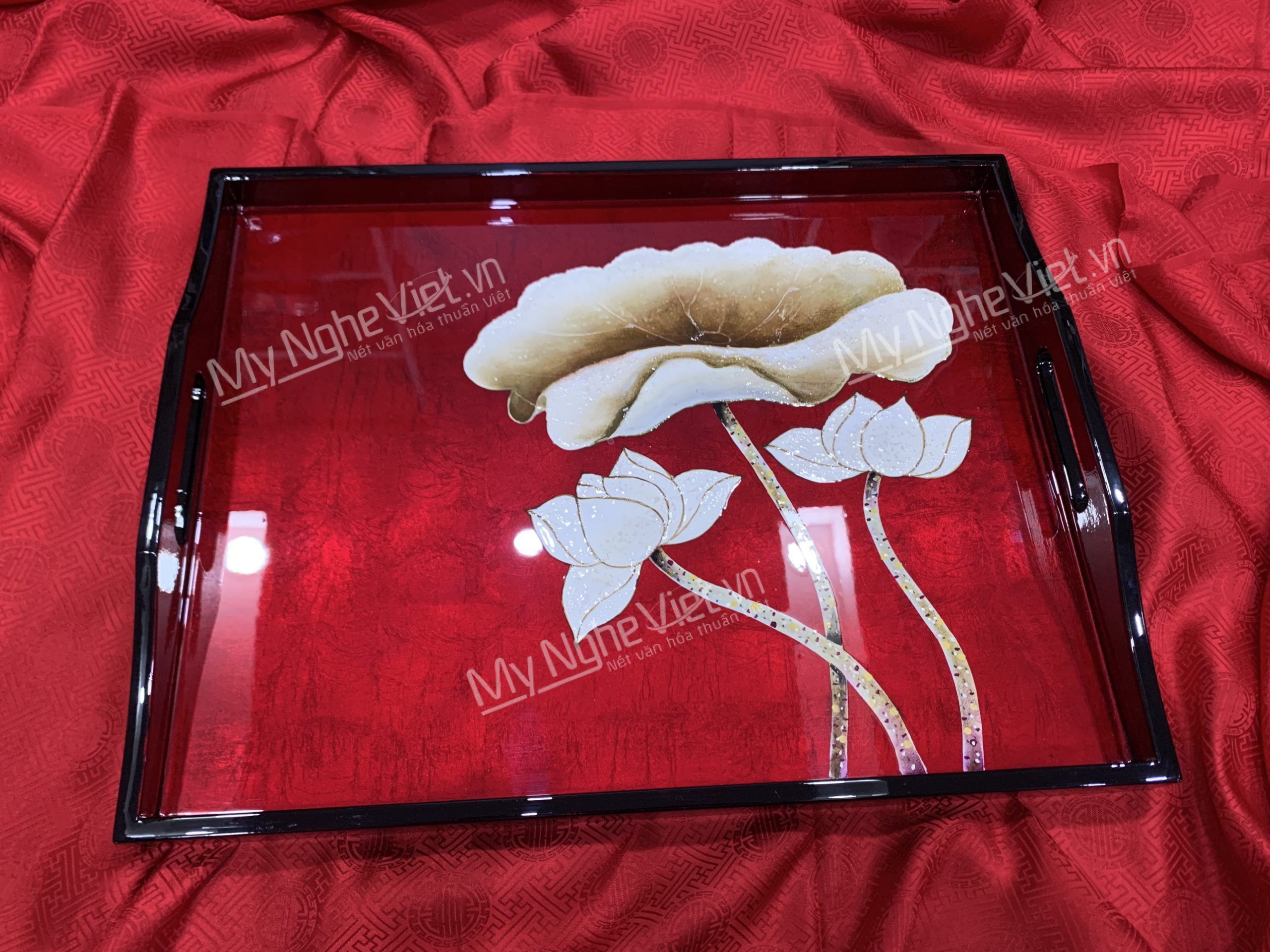 Khay sơn mài vẽ sen cao cấp -Lacquer Trays