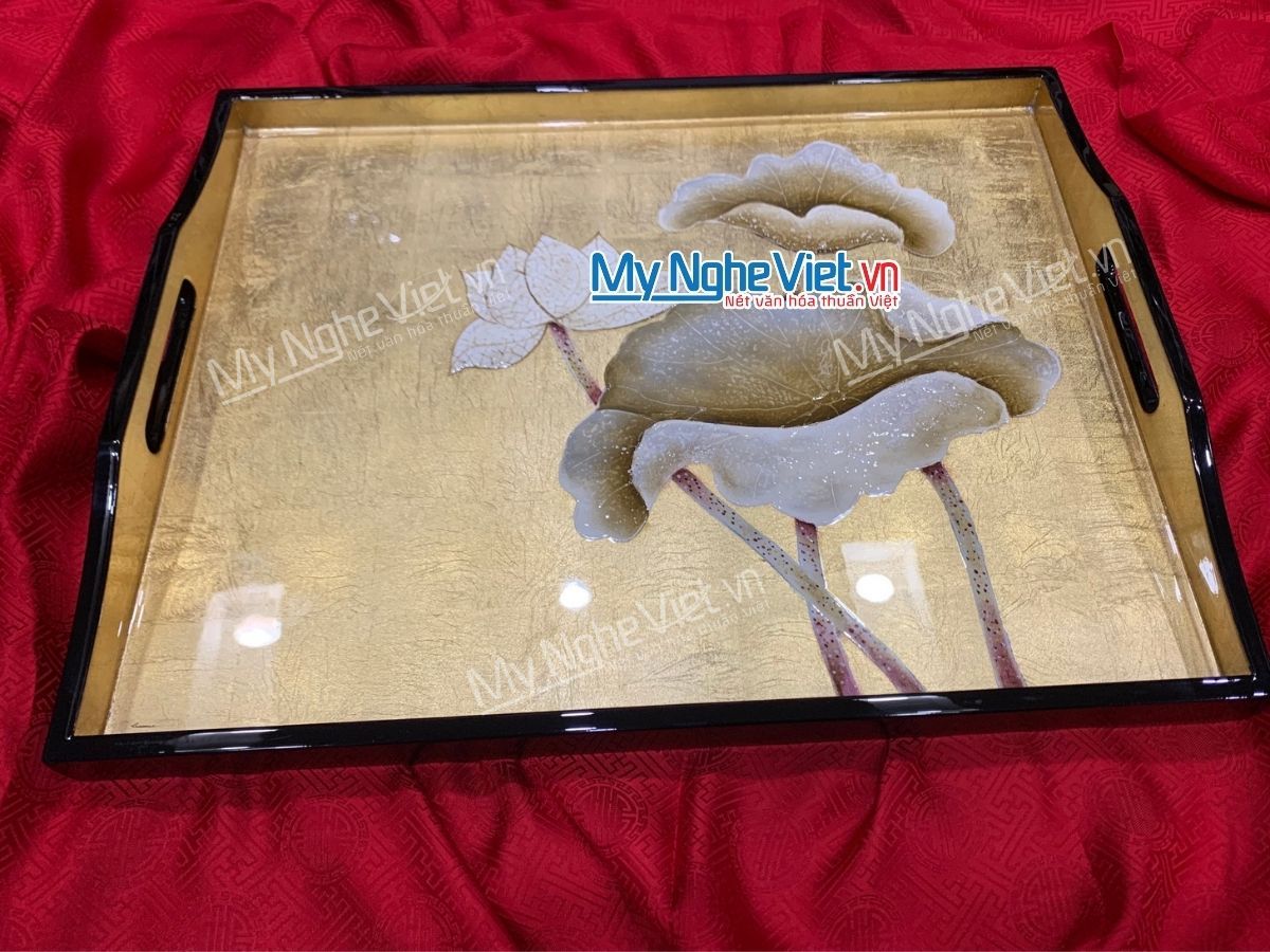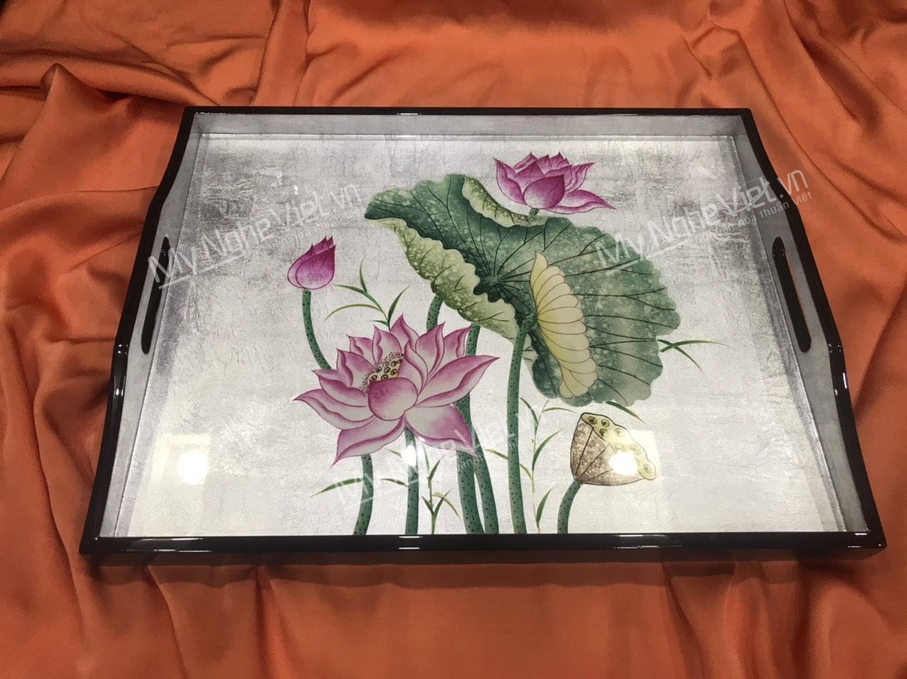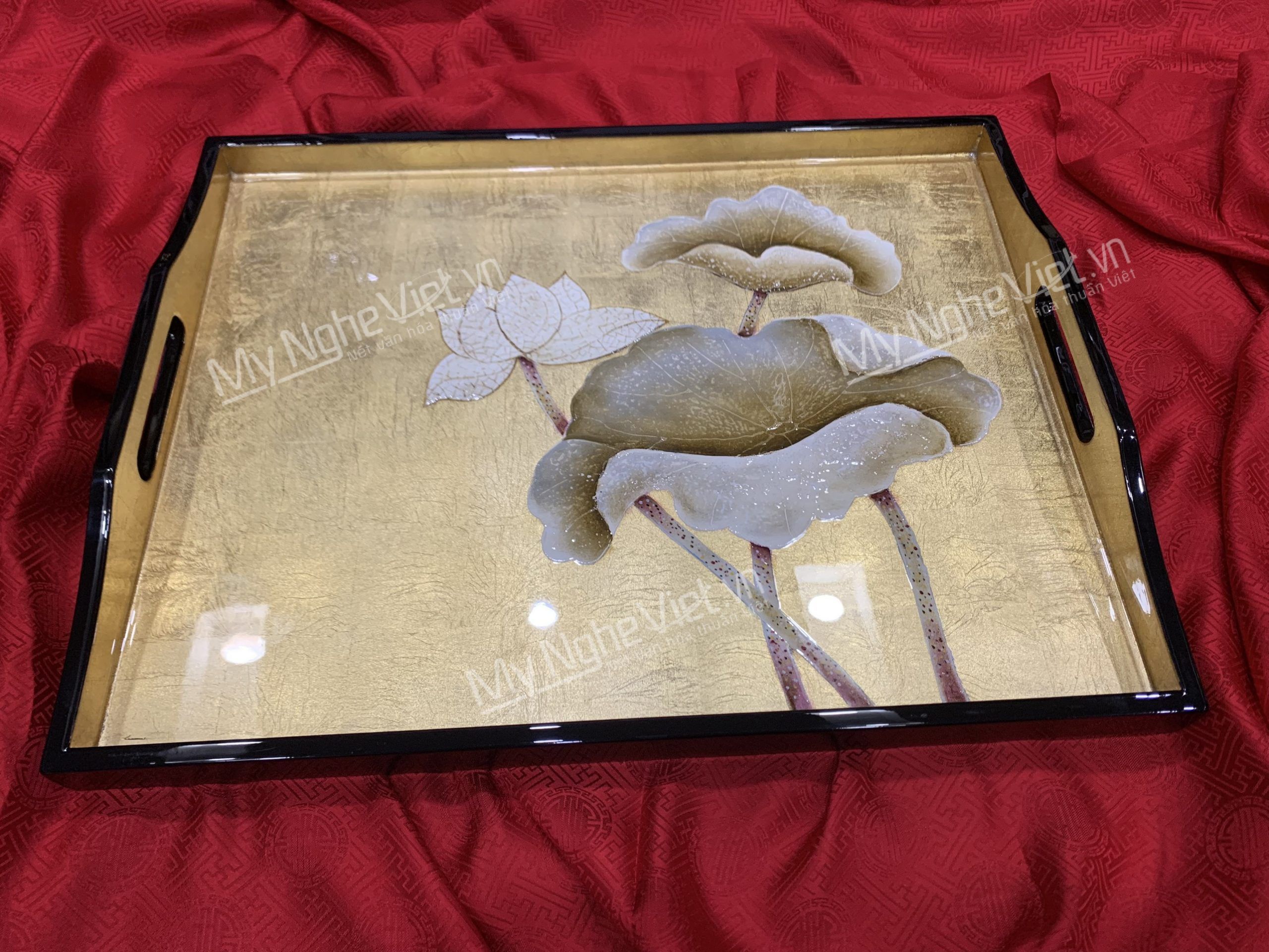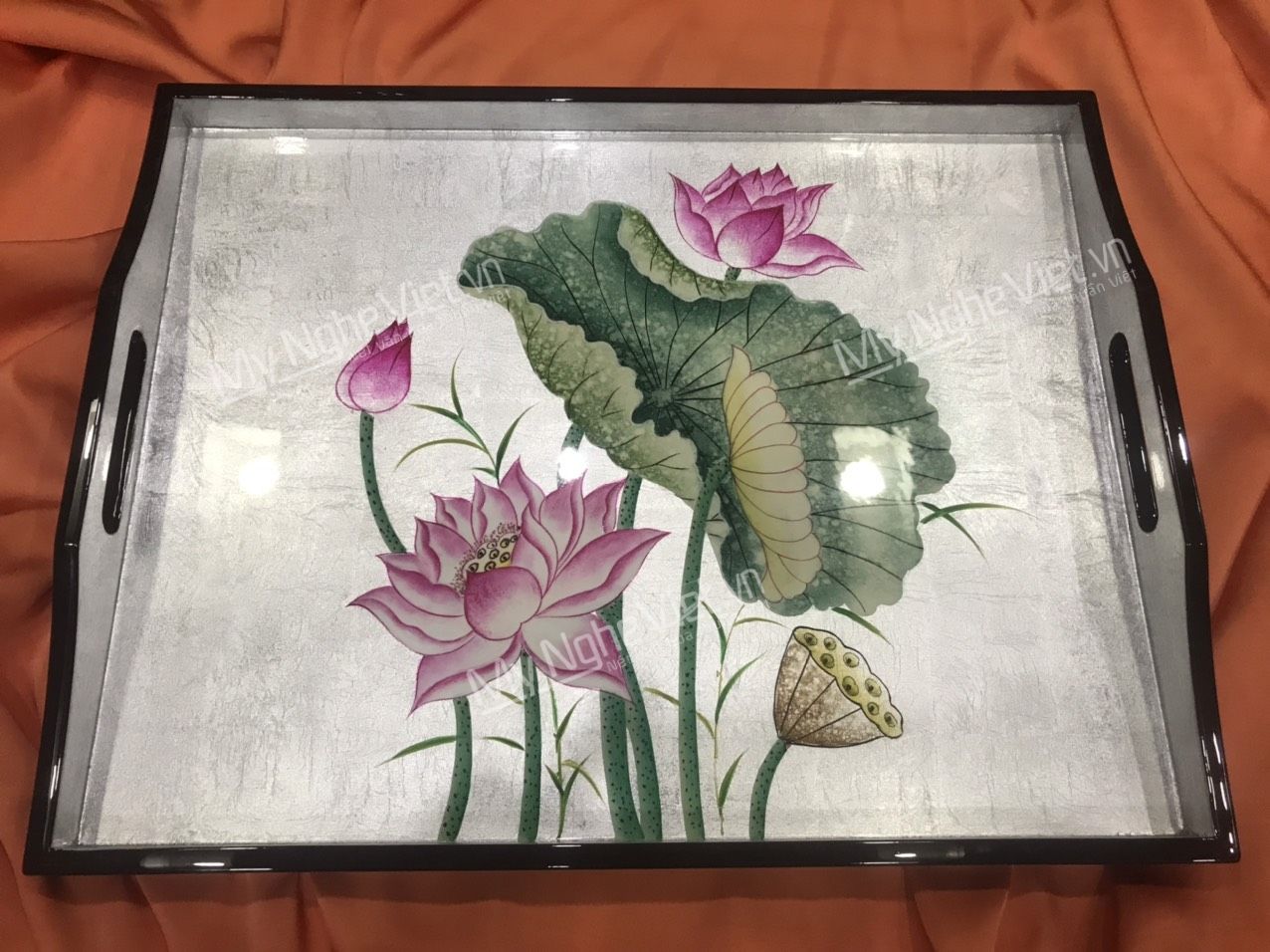 Khay sơn mài vẽ sen cao cấp -Lacquer Trays