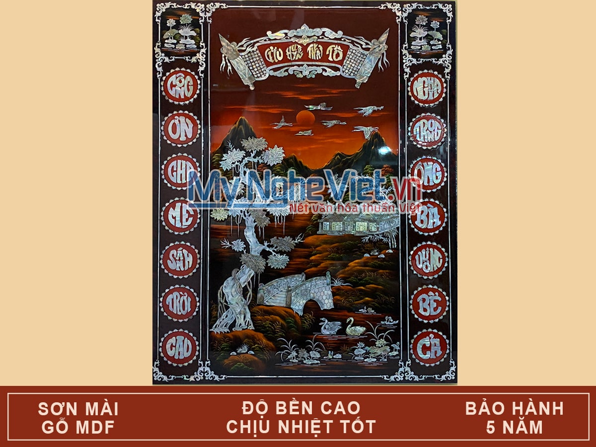 Liễn sơn mài Cửu Huyền Thất Tổ cẩn ốc