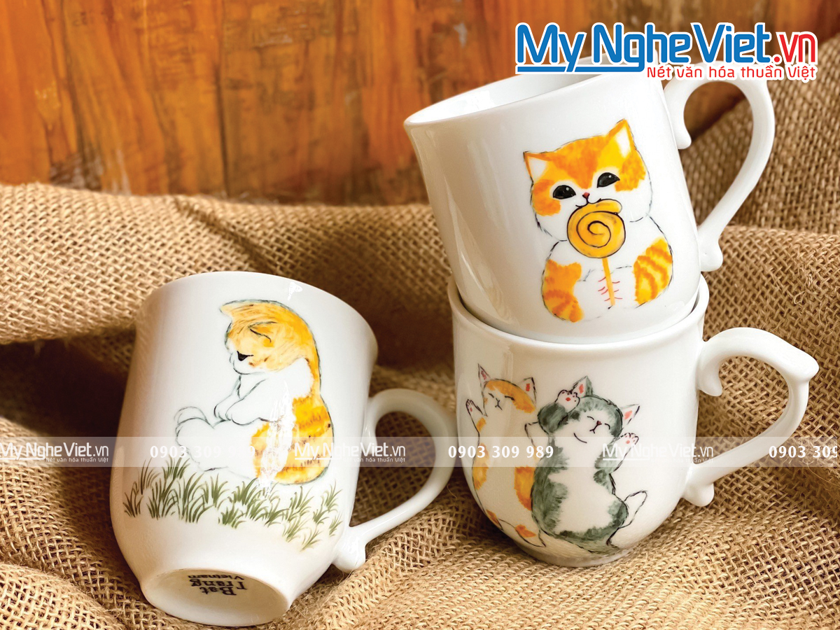 Ngoài những mẫu trắng trơn, ly sứ in ảnh hoạt hình,.. ly sứ quai số 7 tại Mỹ Nghệ Việt còn có những mẫu ly sứ viền vàng – vẽ hoa văn sang trọng. Mẫu ly này được viền vàng công nghiệp 24k lam sáng lên những đường nét của ly, là quà tặng cao cấp cho những dịp quan trọng như đại hội công đoàn, lễ kỉ niệm công ty,…