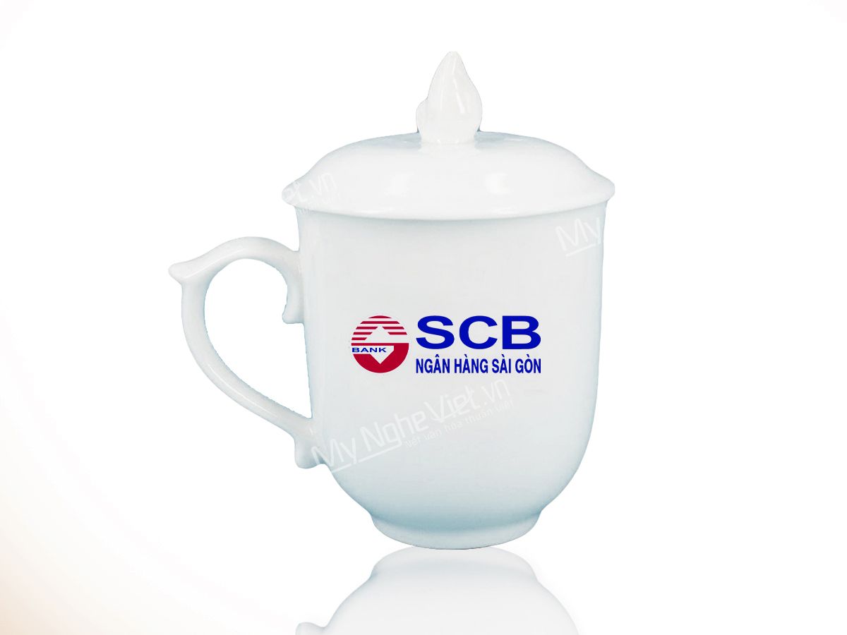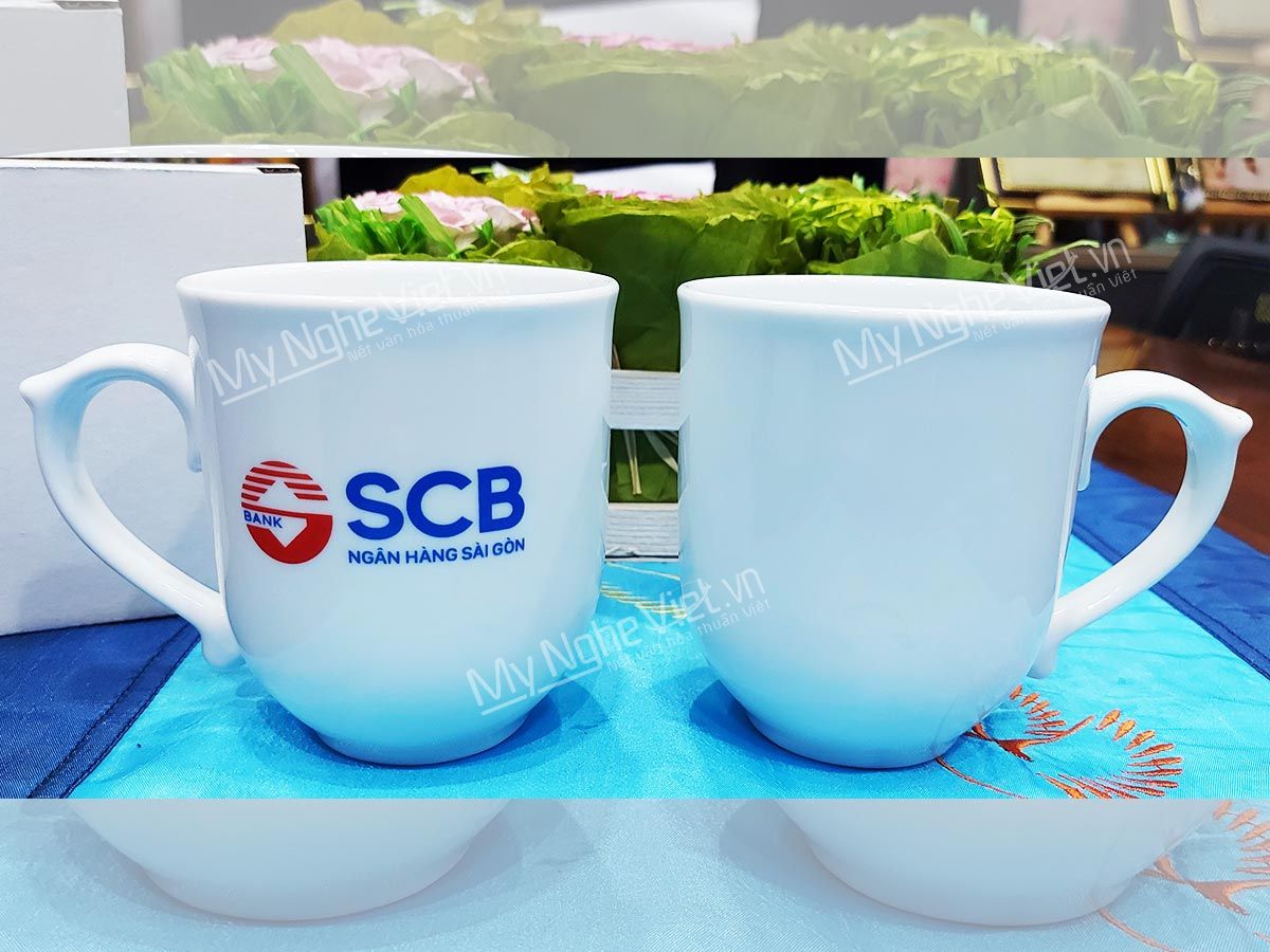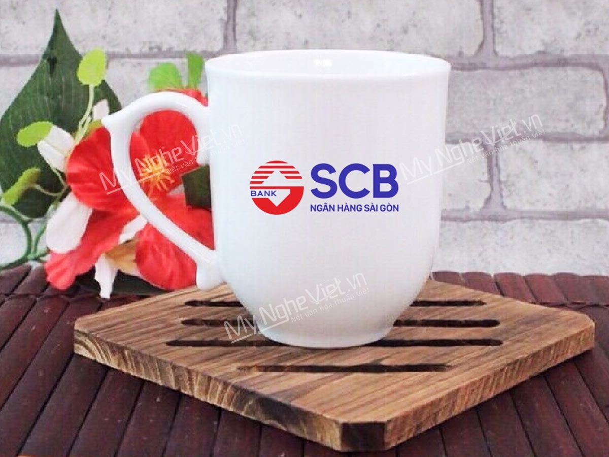 Quà tặng ly sứ in logo SCBChi phí cho 1 ly sứ in logo tại Mỹ Nghệ Việt rất phù hợp ngân sách