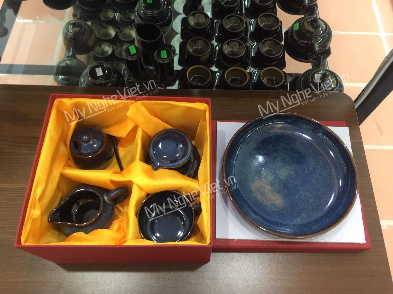 – Màu men hỏa biến trên bộ ấm trà Bát Tràng được tạo ra bởi sự tương tác hóa học giữa ôxít sắt và titan cộng với nhiệt. Màu sắc trên mỗi sản phẩm gốm sứ men hỏa biến là màu do men tạo ra chứ không phải do màu pha.